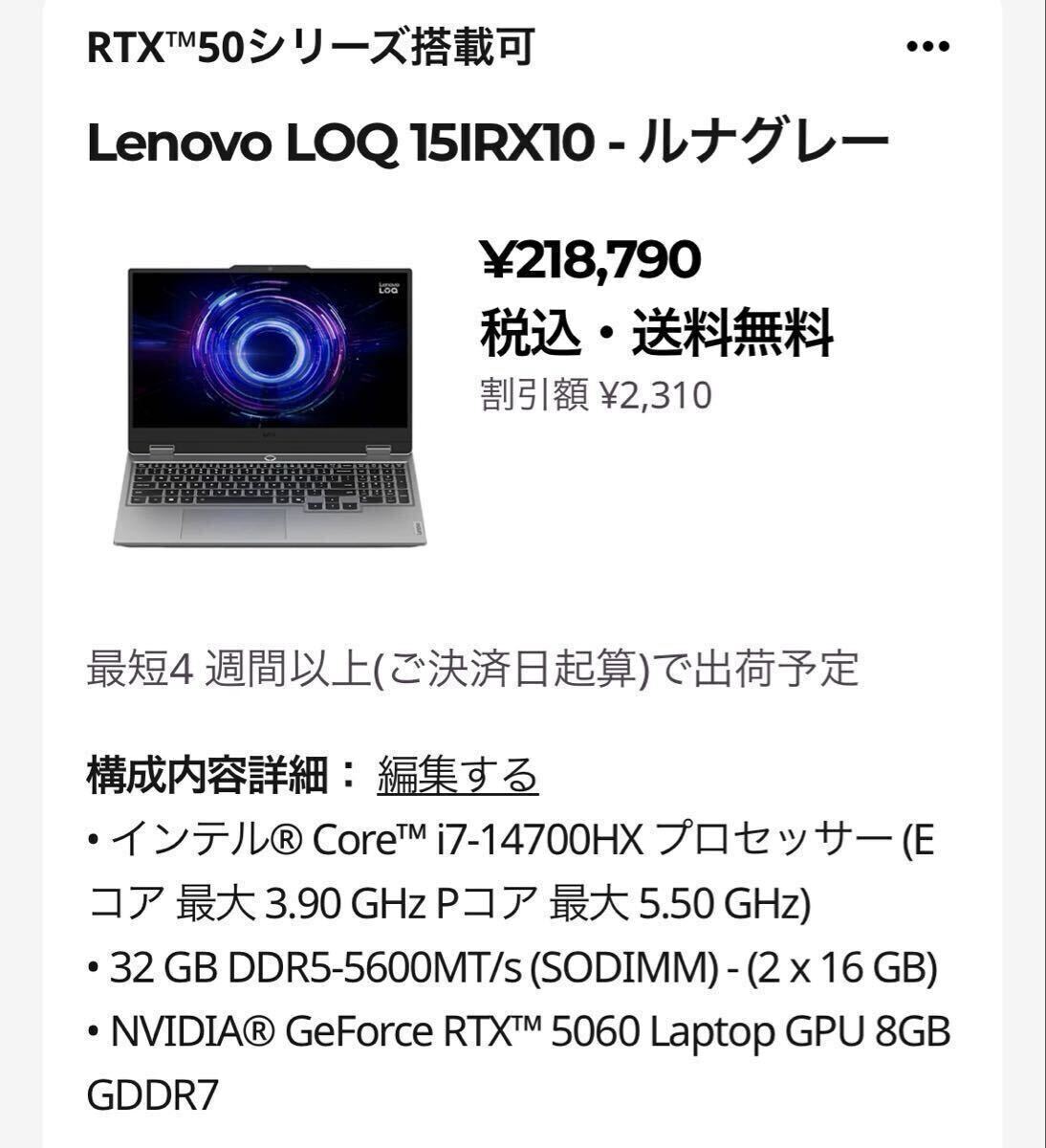 Lenovo LOQ 15IRX9 ルナグレー [83DV0075JP]