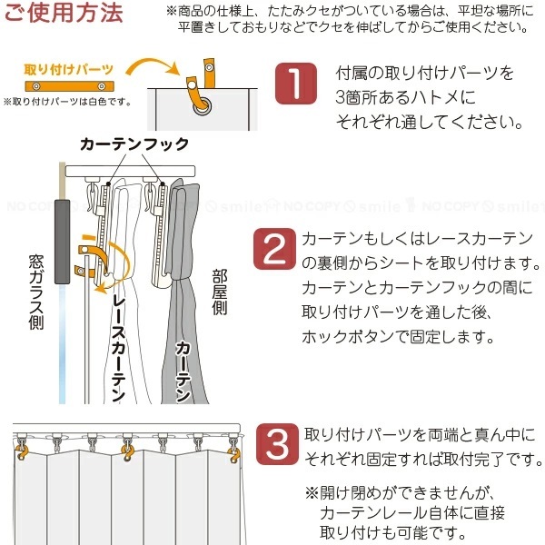 最大温度差4.8℃ カーテンフックを使って簡単取り付け。