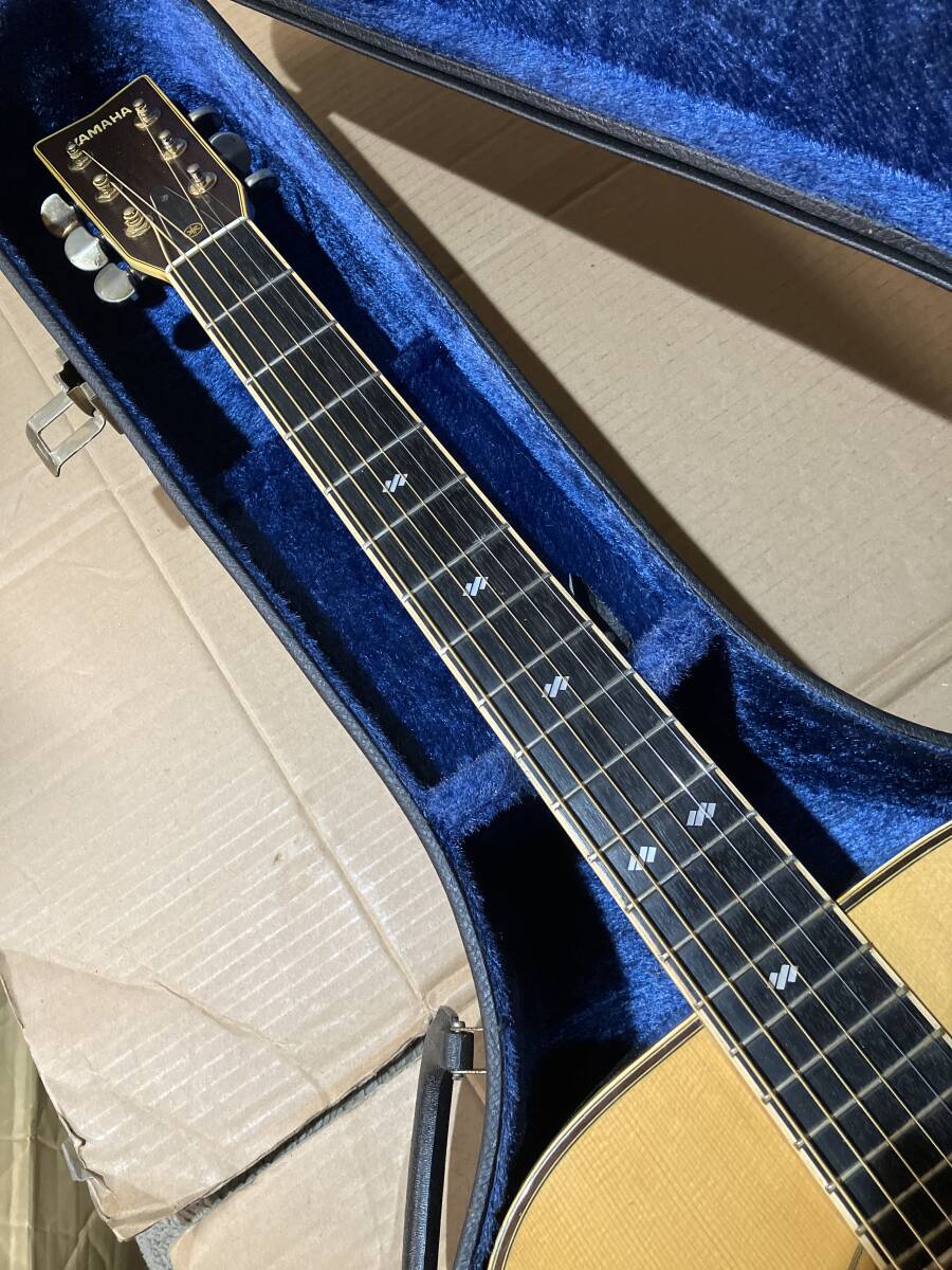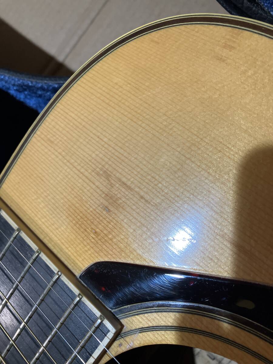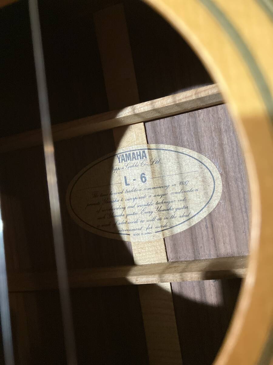 ヤマハ L-6前期 難あり 清掃済み トップ単板で鳴りもなかなかです、金メッキペグ劣化、ボディ裏シール跡?塗装劣化ありますケース素材による焼けみたいなのありコンパウンドで落ちませんでした、ボディトップセンター合わせ目表層部クラックあります裏側から触った感じ表層部のみの割れで鳴りには影響ありませんネックやや順反り12F位置弦高6弦3ミリ1弦2ミリロッド回りましたサドル高さ余裕あるので削れば弦高下げられそうです