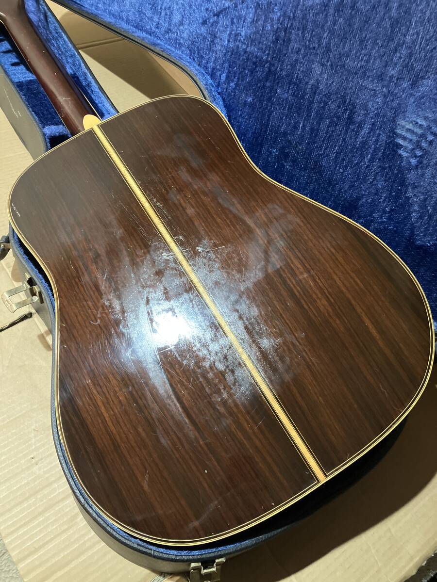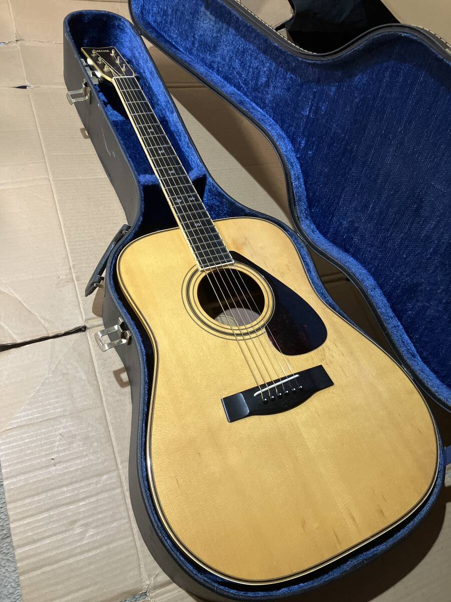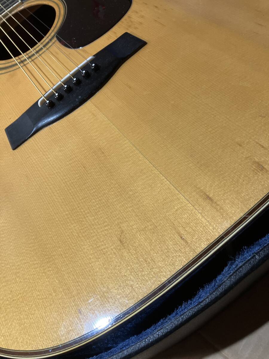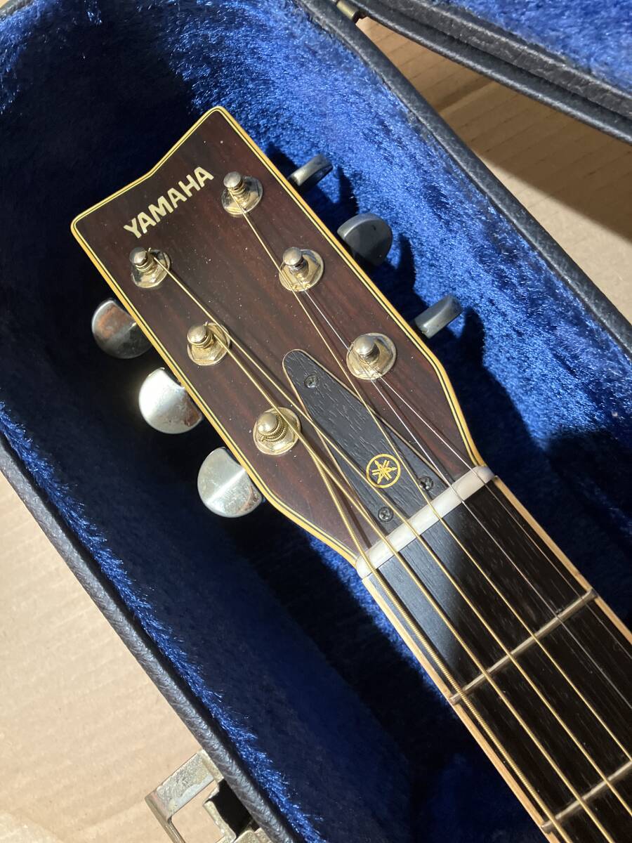 ヤマハ L-6前期 難あり 清掃済み トップ単板で鳴りもなかなかです、金メッキペグ劣化、ボディ裏シール跡?塗装劣化ありますケース素材による焼けみたいなのありコンパウンドで落ちませんでした、ボディトップセンター合わせ目表層部クラックあります裏側から触った感じ表層部のみの割れで鳴りには影響ありませんネックやや順反り12F位置弦高6弦3ミリ1弦2ミリロッド回りましたサドル高さ余裕あるので削れば弦高下げられそうです