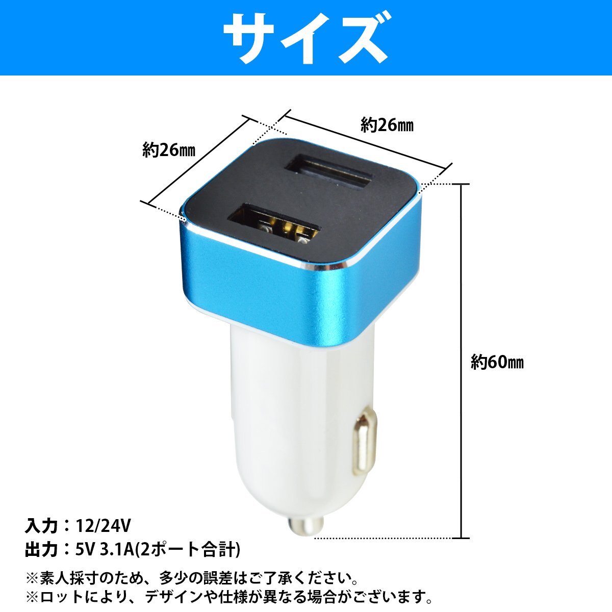 USB2ポート 電圧計 電流計 12V シガーソケット 青×白 DC5V USBポート 増設 電源 スマホ 車内 充電 シガソケ
