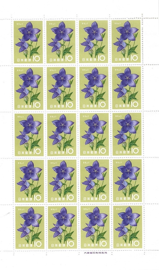日本で初めての花シリーズ切手のひとつ、「ききょう」のシートです。表裏を撮ってます。未使用に近いとみますが、状態に神経質なかたはお断りします。クレームはお断りします。厚紙をあてビニールで覆い折曲禁止と送付の封筒表に朱字で記して送付しますが、配達状況の確認と更なる状態保持を考慮し簡易書留郵便の送料530円( 簡易書留350円+定形外郵便180円)での対応お願いします。土日祝日の発送は、してないです。月曜から金曜の平日の早いうちでの発送になります。 発送には郵便料金で記念切手をたくさん使います。ほかの切手シートは同日落札分はおまとめ可です。支払い手続き、受取連絡は早くください。追跡番号のある郵便関係のかた手渡しの簡易書留の送料になります。その他の発送は示してません。