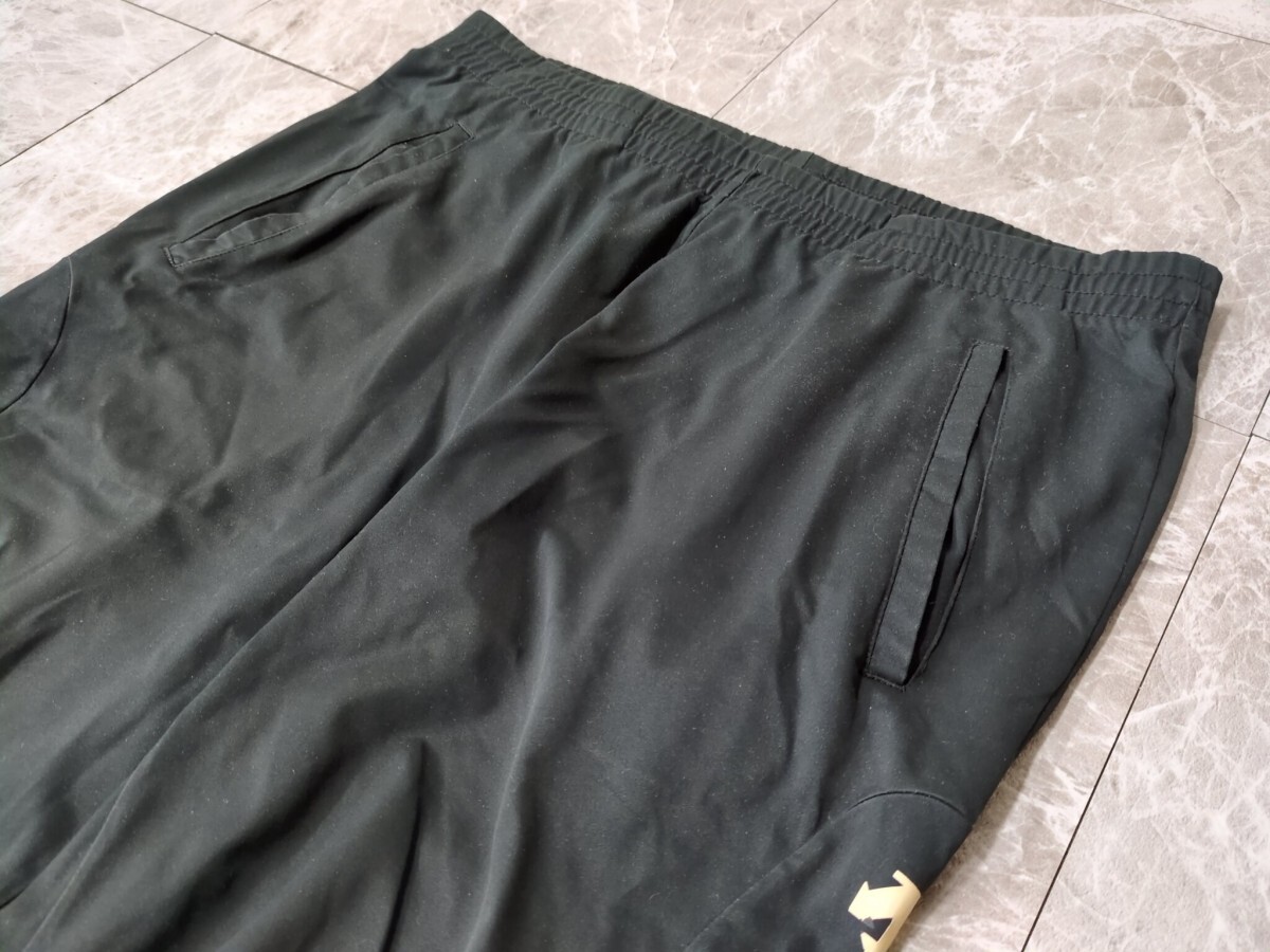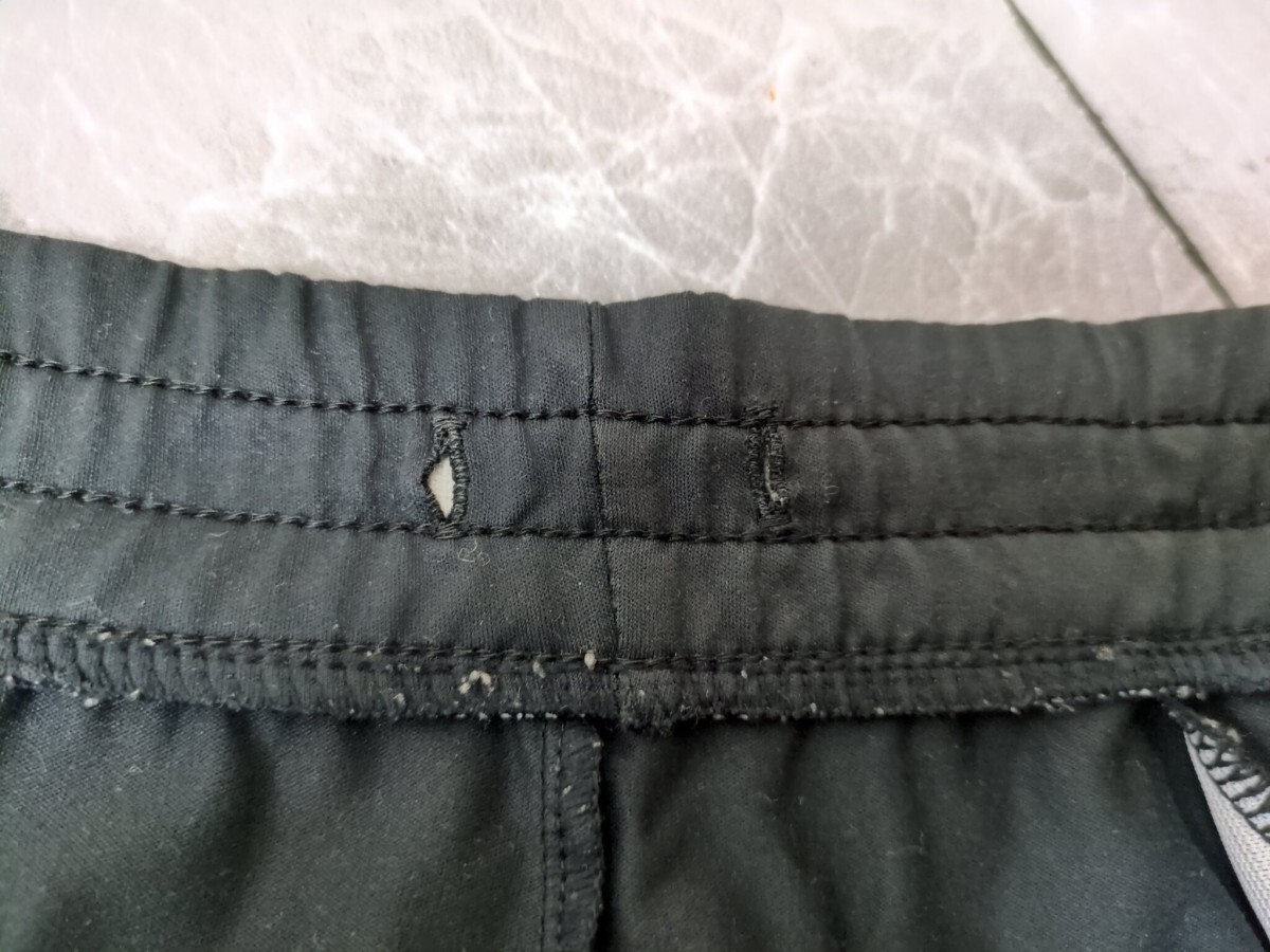 | 上;後ろ裾付近に軽いヒカリ 下:生地に使用感があります プリントにひび剥がれ ウエストゴム欠品 |