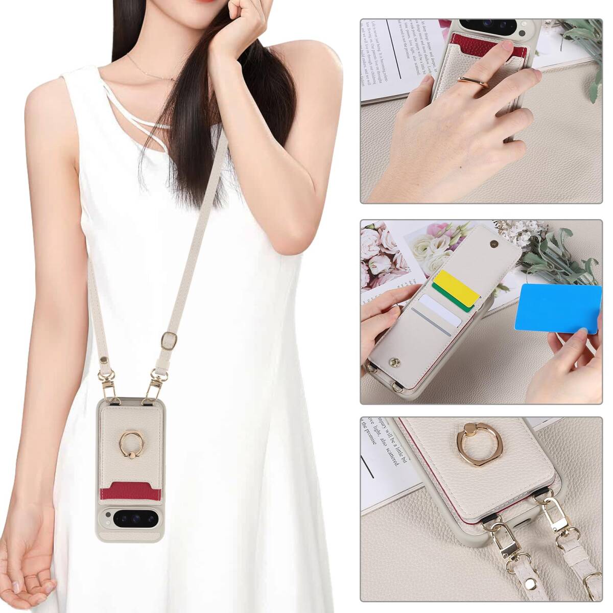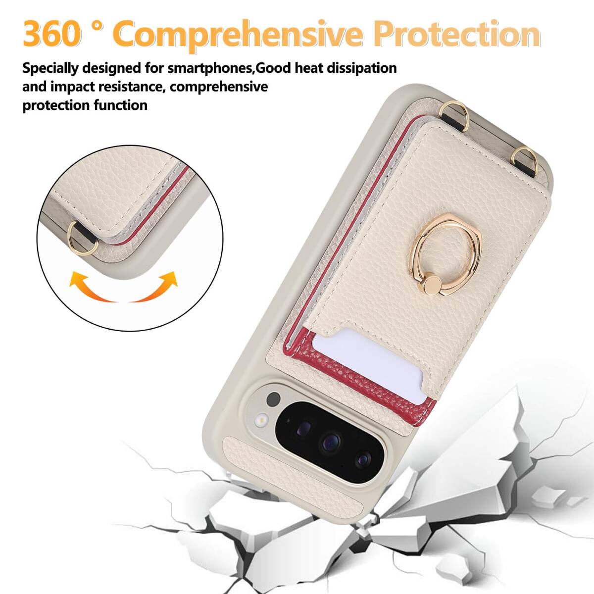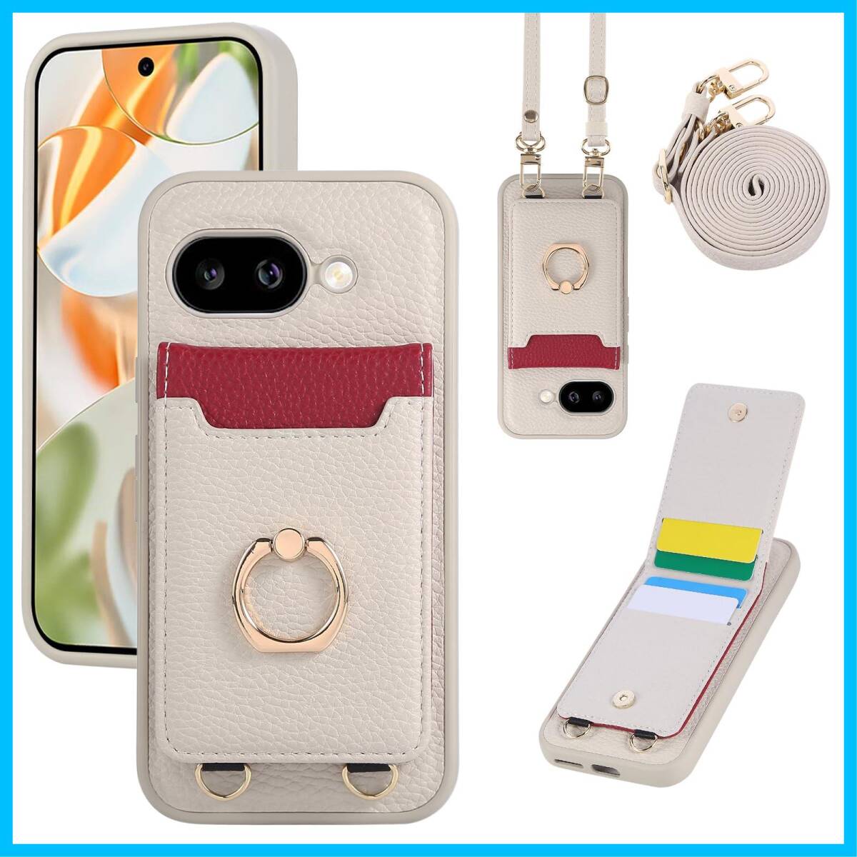 for Google Pixel 9A ケース 手帳型 グーグルピクセル9A ケース ショルダー Googleピクセル9A カバー 背面手帳型 ぐーくるぴくせる9a スマホケース リング付き スタンド機能 カード収納 肩掛け 耐衝撃 携帯ケース (ホワイト)