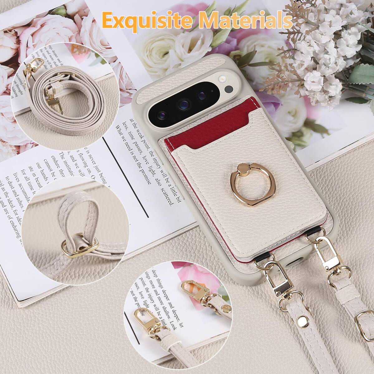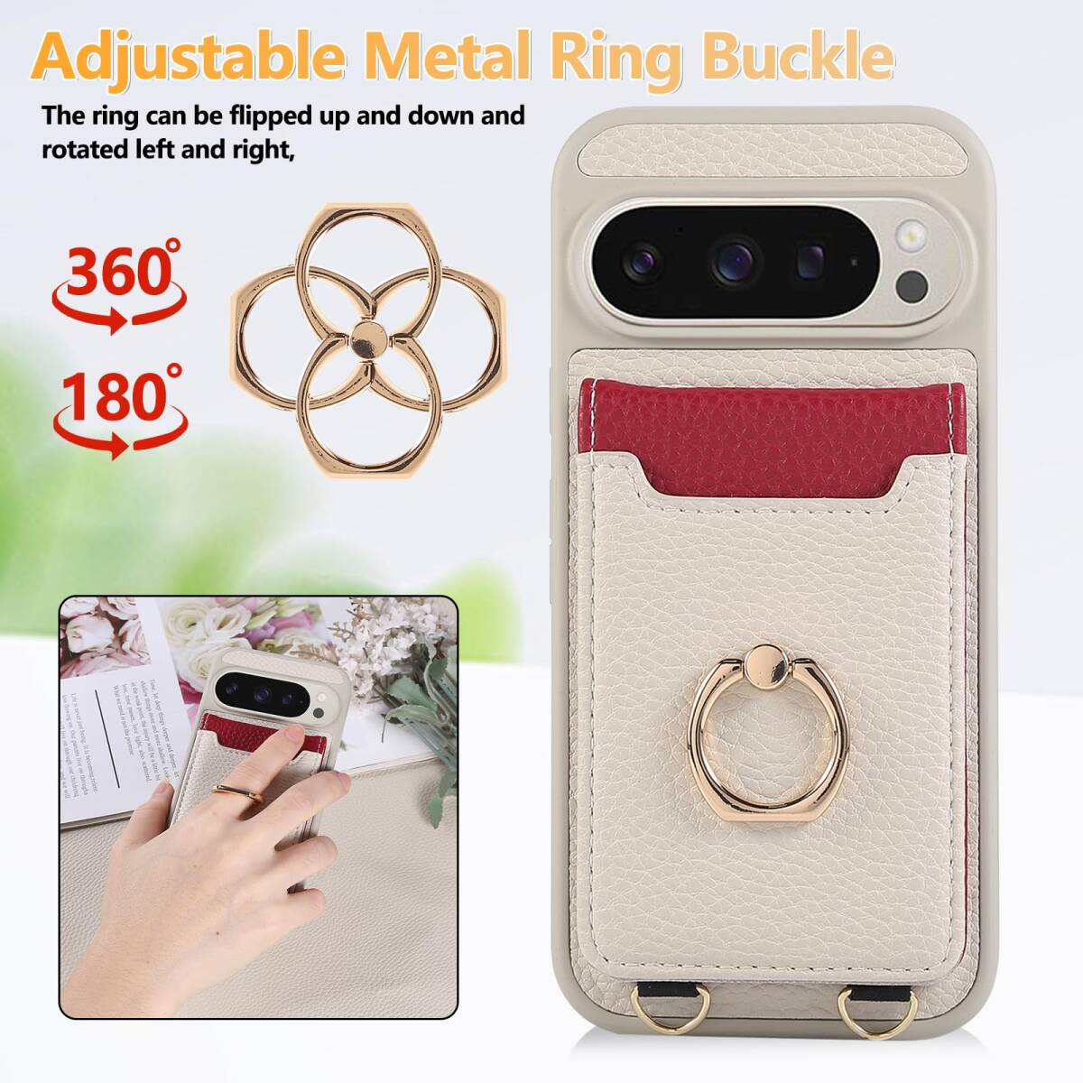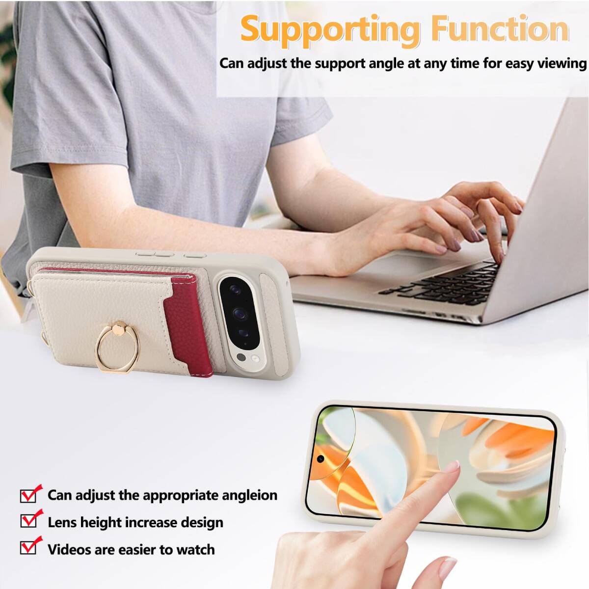 for Google Pixel 9A ケース 手帳型 グーグルピクセル9A ケース ショルダー Googleピクセル9A カバー 背面手帳型 ぐーくるぴくせる9a スマホケース リング付き スタンド機能 カード収納 肩掛け 耐衝撃 携帯ケース (ホワイト)