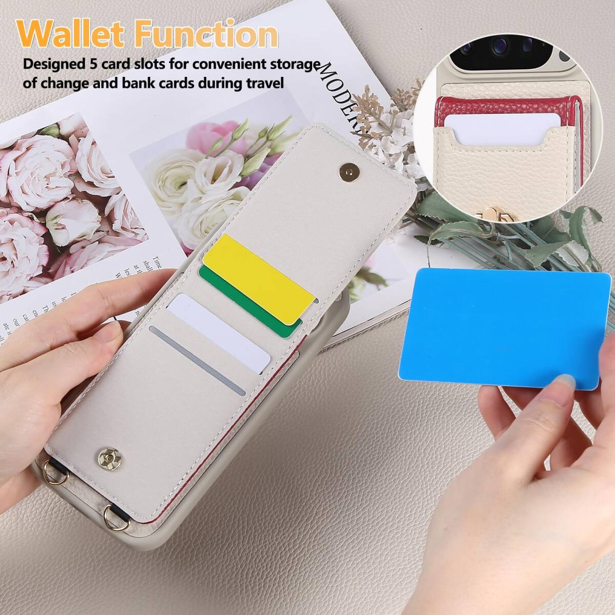 【背面収納】このgooglepixel9a ケースの背面には5つのカードポケットがあり、銀行カード、IDカード、交通カードなどを一緒に収納でき、とても便利な収納機能を備えています。