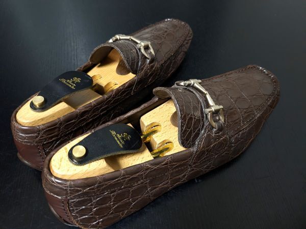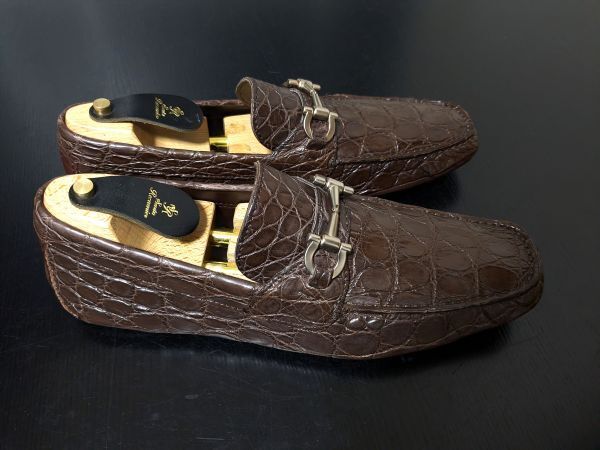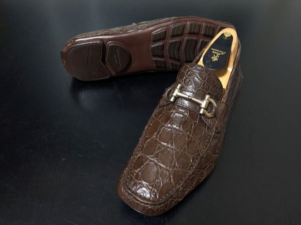 未使用 フェラガモ 8.5D Ferragamo ガンチーニ リアルクロコレザー ドライビングスリッポン ローファー 箱付