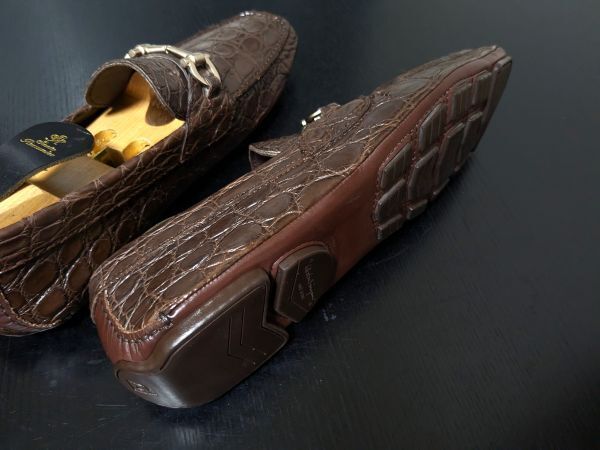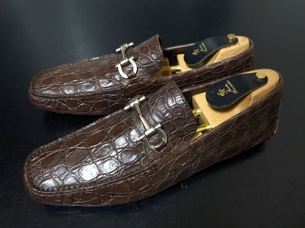 未使用 フェラガモ 8.5D Ferragamo ガンチーニ リアルクロコレザー ドライビングスリッポン ローファー 箱付 951