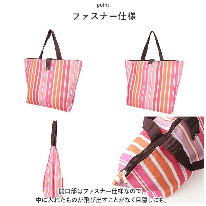 | 商品説明 | ・・お買い物やレジャーなど幅広く使えるエコバッグが発売。 ・【ファスナー仕様】 ・開口部はファスナー仕様なので、中に入れたものが飛び出すことがなく目隠しにも。 ・【マチ付き】 ・底マチがあるから荷物を安定した状態で持ち運びできる。 ・【はっ水加工】 ・内側は、はっ水加工された生地なので汚れたらサッと拭き取れてお手入れ簡単。 ・【使いやすい長さの持ち手】 ・肩掛けもできる長さの持ち手で持ち運びラクラク。 ・【コンパクト収納】 ・使わない時はたたんでスナップボタンで留めるだけ!コンパクトに収納できるので、バッグの中に入れておけば旅行のサブバッグやお買い物バッグとしても活躍! |