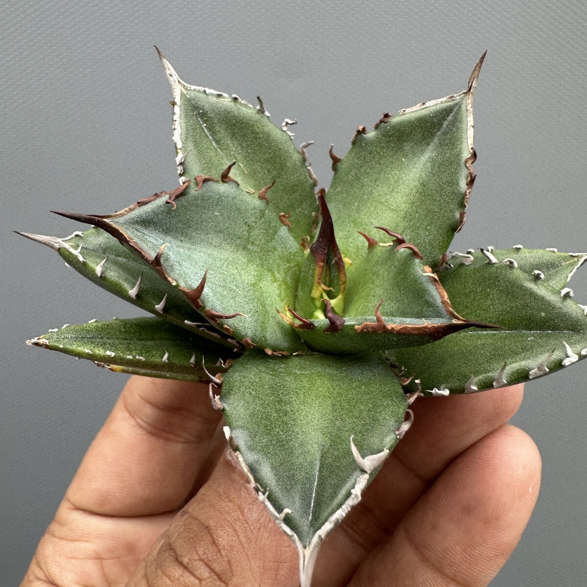 AO27【青田園芸】大人気アガベ チタノタ 緑犀牛 agave green rhino 超絶狂棘 大甲蓋 優良血統子株