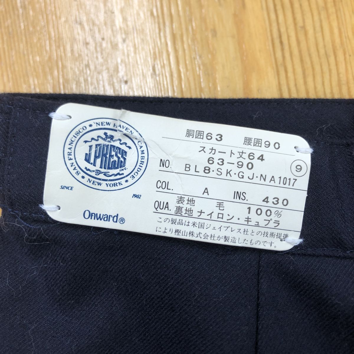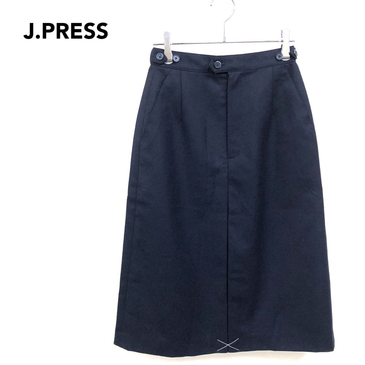 2N1694-W◆タグ付き◆J.PRESS ジェイプレス ウール 台形スカート 裏地付き シンプル 無地 ミディー丈 きれいめ◆size:9 ネイビー 毛