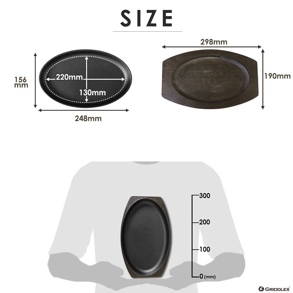 | 商品名 | 業務用 ステーキ皿 楕円 25cm×16cm 専用木台付き |