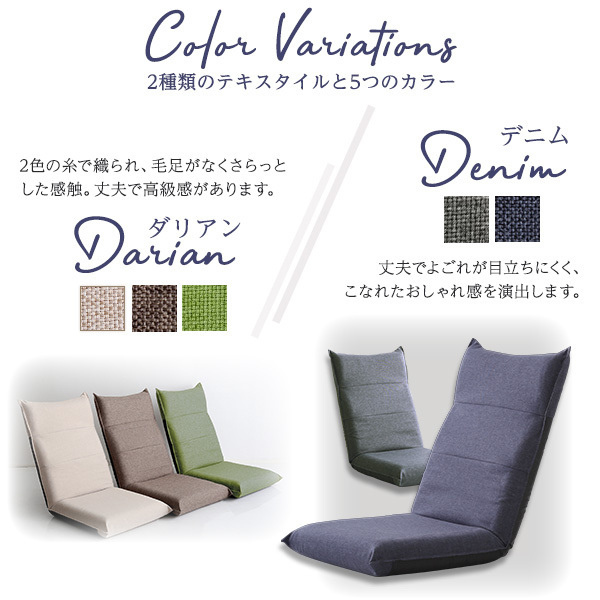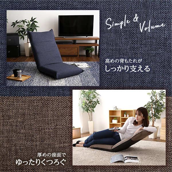 【ポイント】 高めの背もたれがしっかり体を支えるハイバック座椅子です。 14段階のギア調整が可能なので、お好みの角度が見つかります。 使わないときには折りたたんで収納可能です。 座面は11cmの厚みがあり、長時間座っていても疲れにくい! |