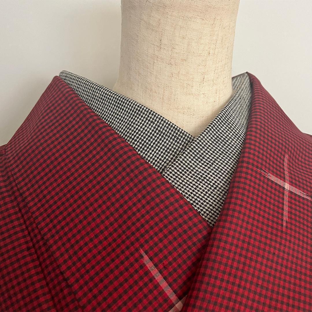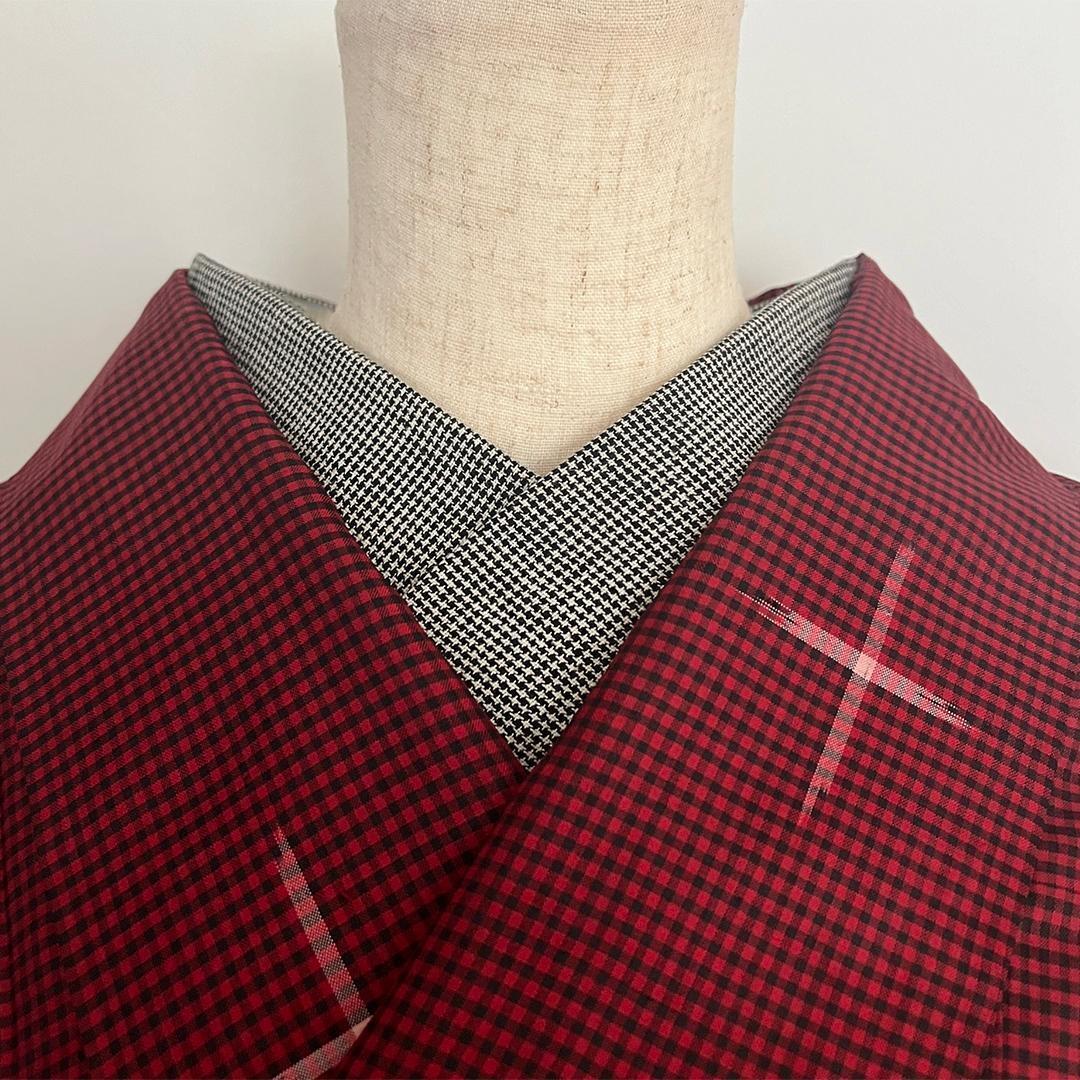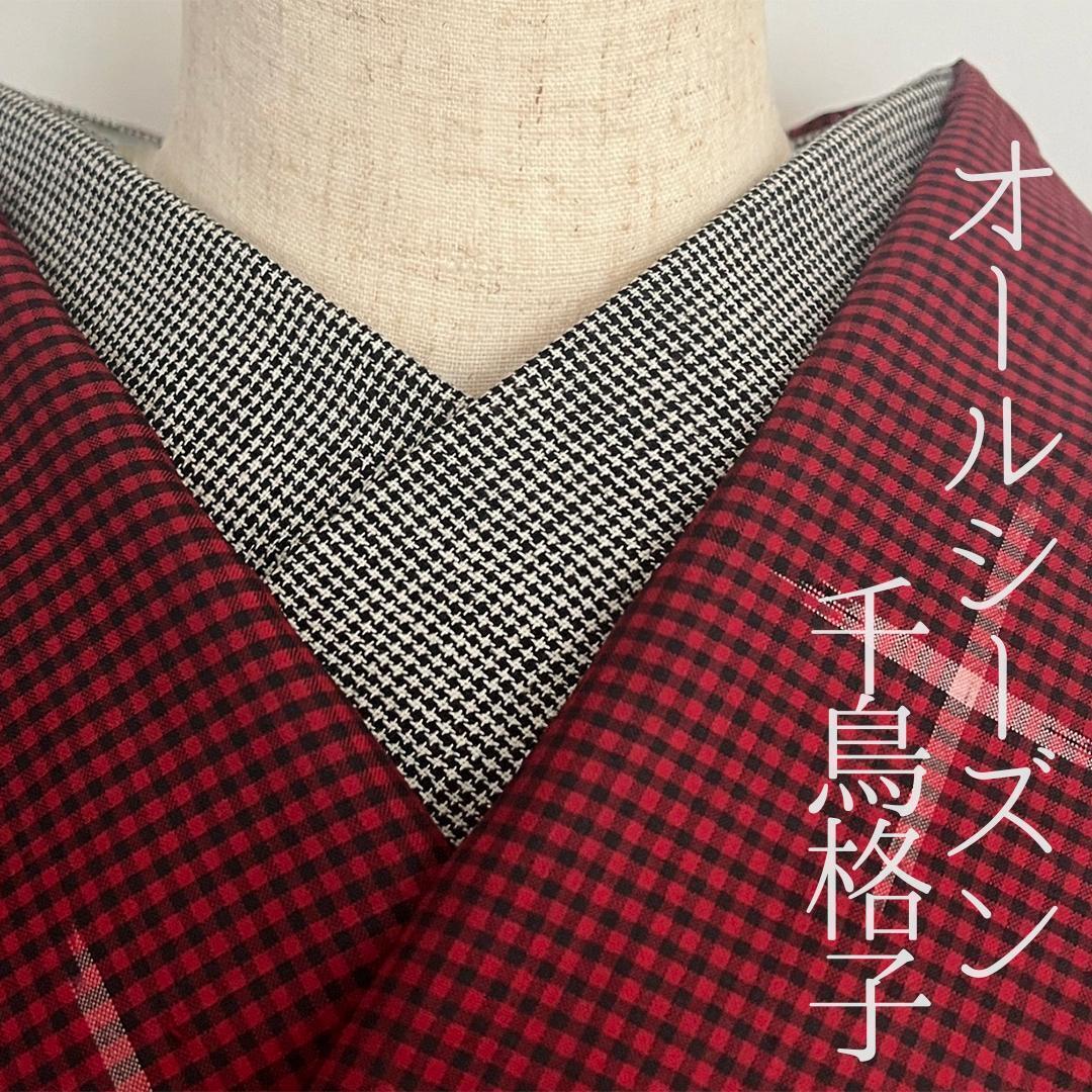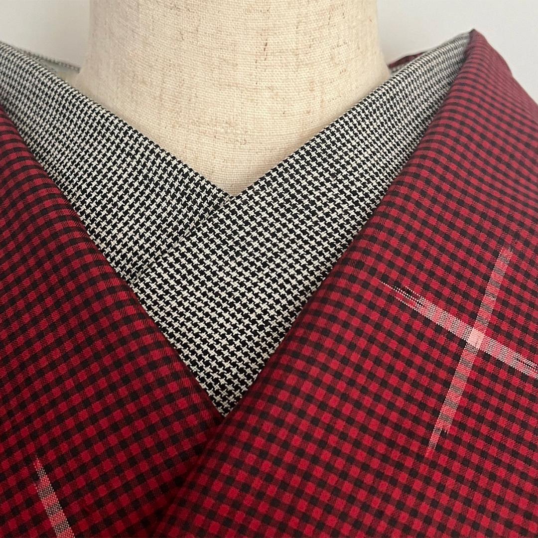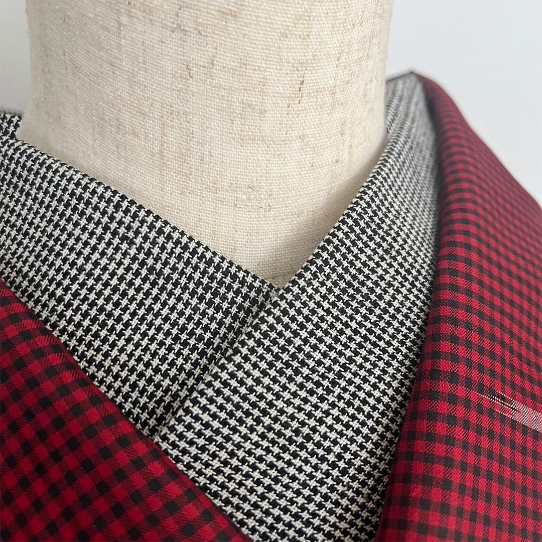 半衿 オールシーズン 千鳥格子 綿麻 コットンリネン 白黒 モノトーン