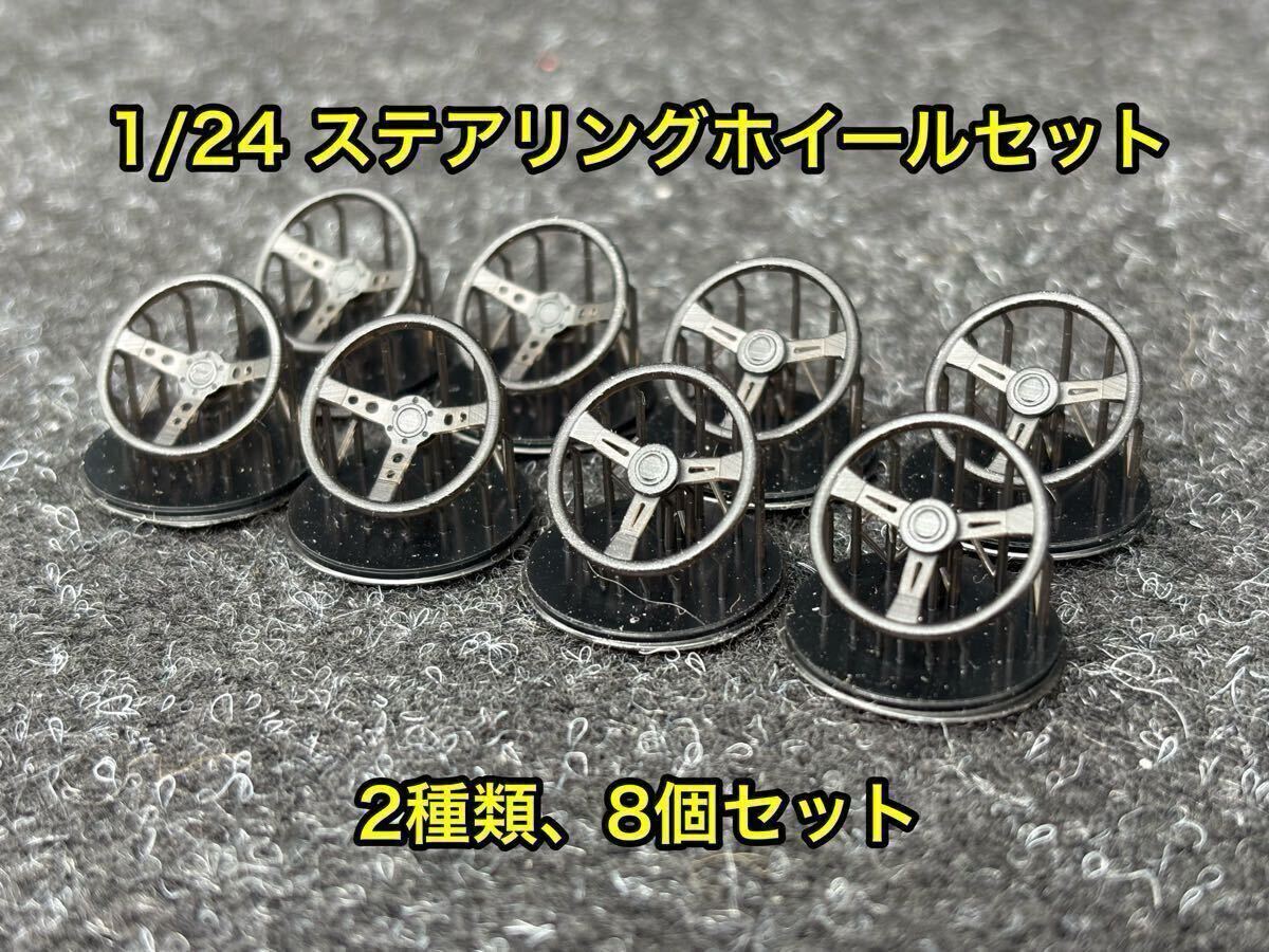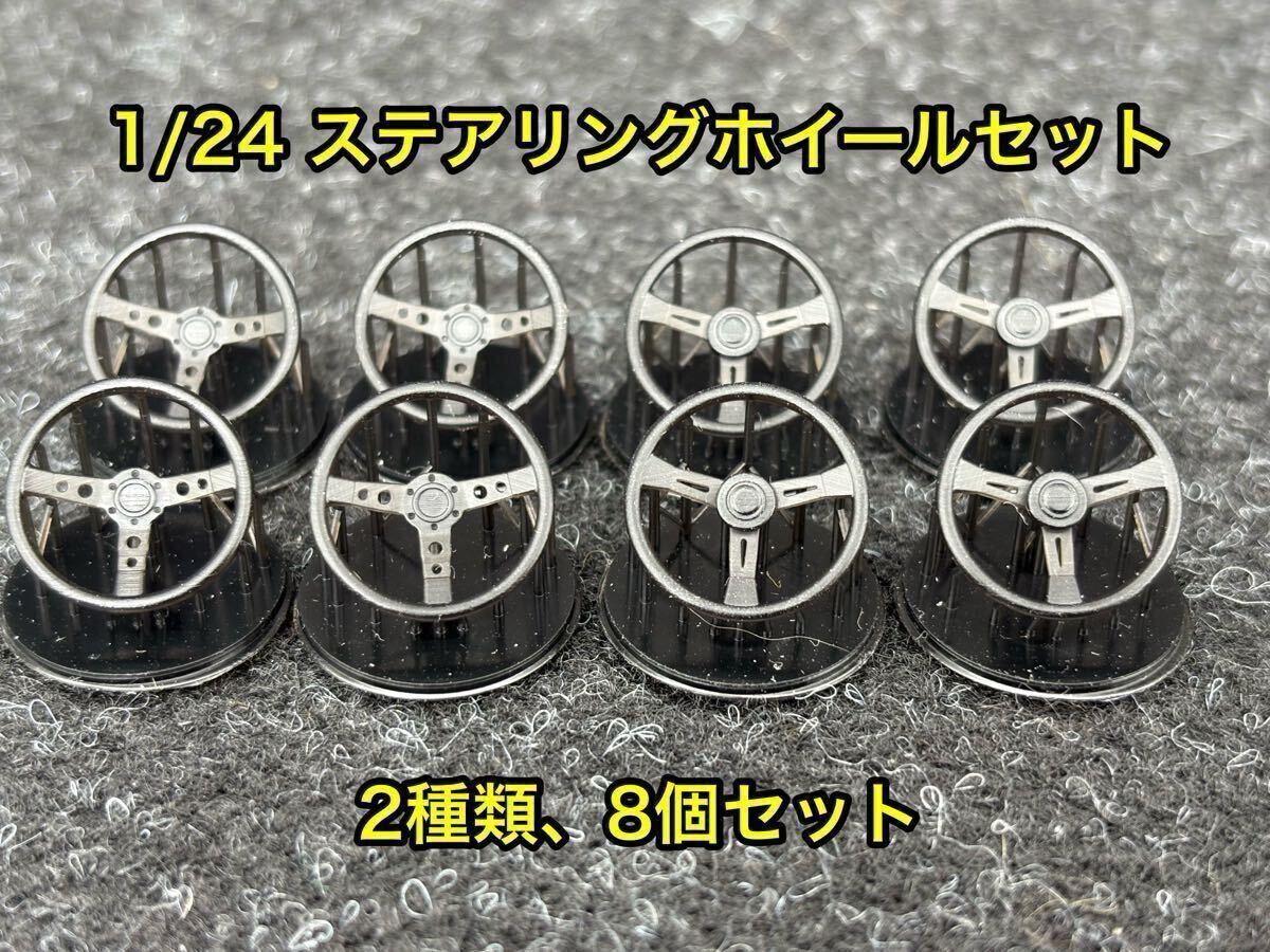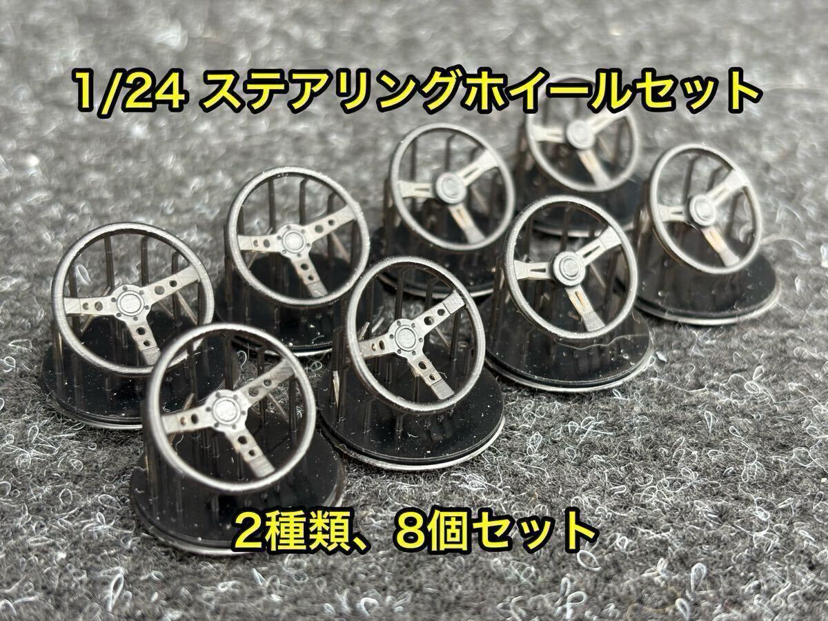 *1/24スケールのステアリングホイール8個セットです。ナルディタイプ4個、モモディープコーンタイプ4個となります。