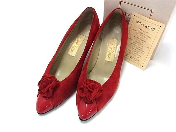 NINA RICCI ニナリッチ スエード×パテントレザー ヒール パンプス サイズ36 1/2(約23.5cm) 靴 シューズ レディース レッド系 DK0446