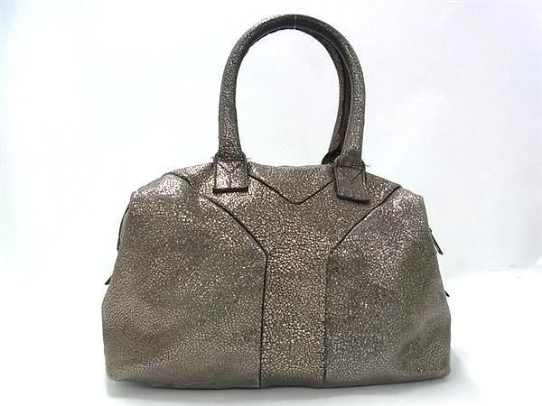 1円 YVESSAINTLAURENT イヴサンローラン イージー レザー ラメ トートバッグ ショルダー ハンドバッグ 肩掛けかばん ブロンズ系 GA6226