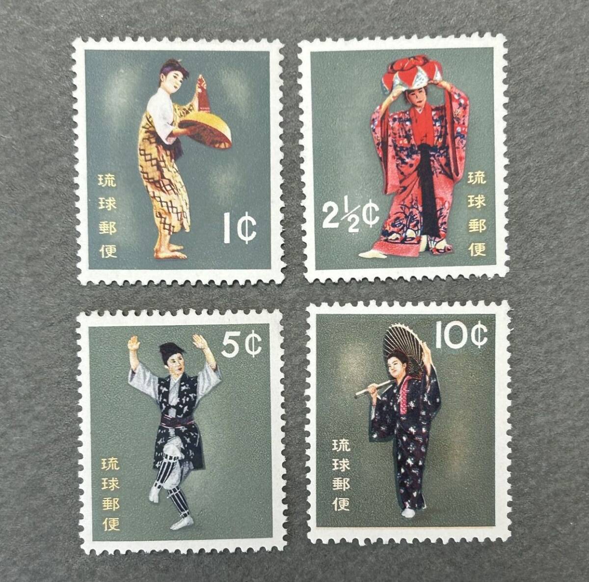 琉球切手 民族舞踊(英字なし) 4種完 未使用 糊落ち