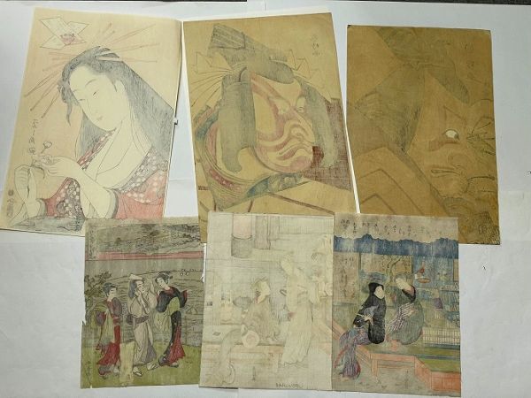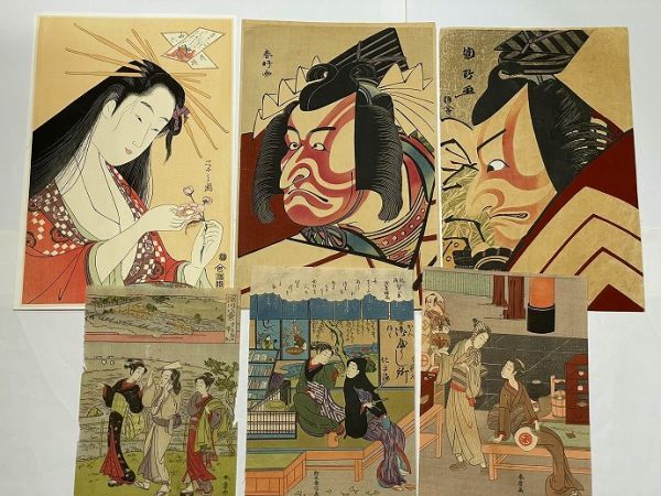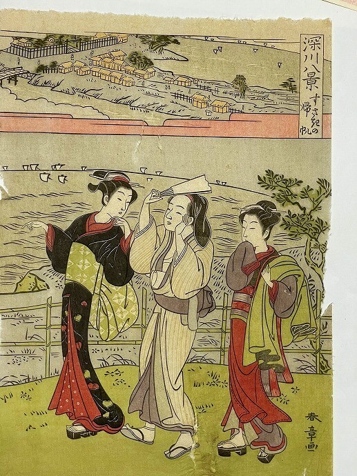 ・勝川春章 深川八景/鳥文斎栄之 大首絵・合計6点一括・彩色木版画・摺り良し