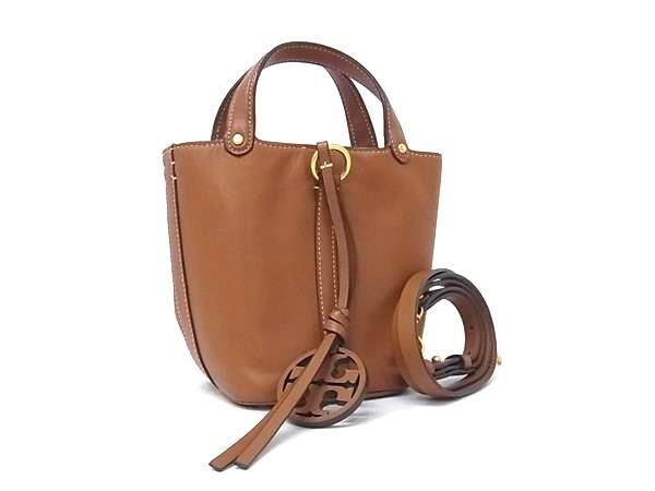 1円 ■美品■ TORY BURCH トリーバーチ ミラー レザー 2WAY ハンドバッグ トートバッグ ショルダーバッグ レディース ブラウン系 FU6461