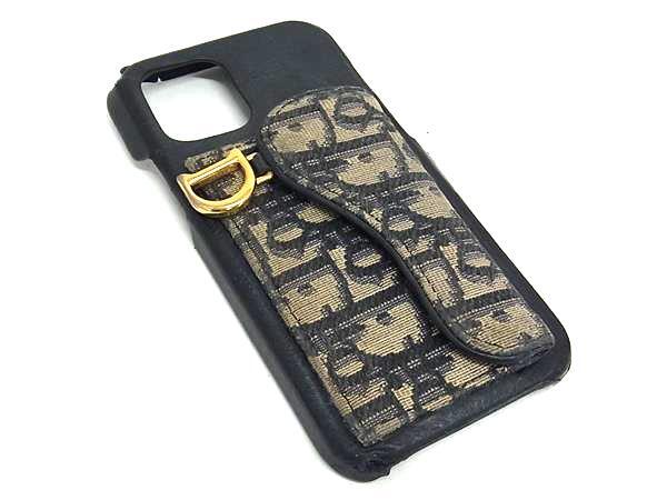 ChristianDior クリスチャンディオール トロッター レザー×キャンバス iPhone 13/14対応 アイフォンケース ネイビー系 DJ8549