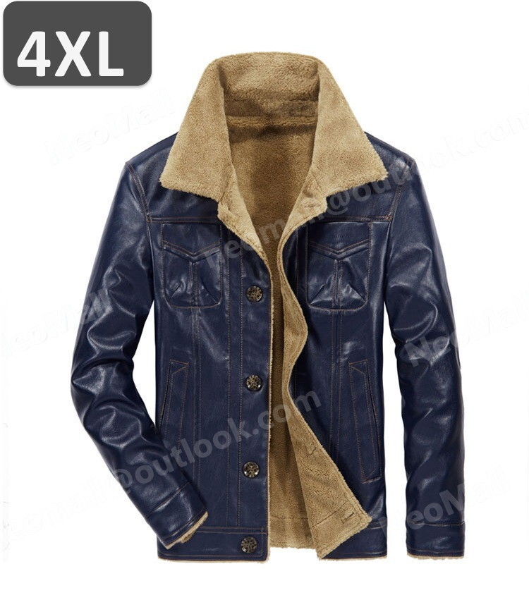メンズ レザージャケット【983】ブルー 4XLサイズ 裏起毛 革ジャン バイクジャケット ジャケット PUレザー ブルゾン ライダーズ