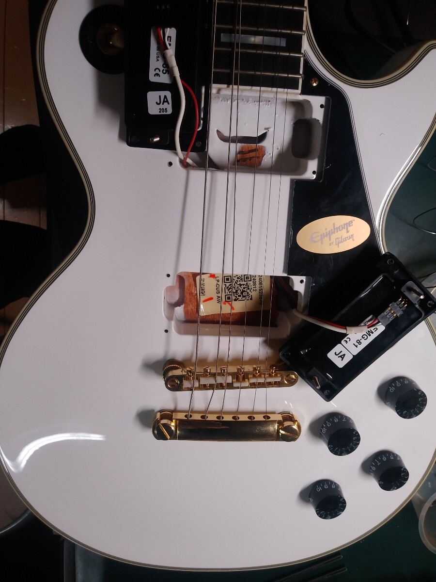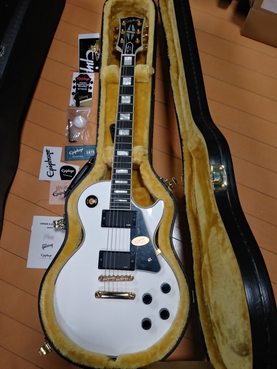 Epiphone Inspired by Gibson Les Paul Custom Alpine White エピフォン レスポール カスタムです。24からはじまるシリアルです。