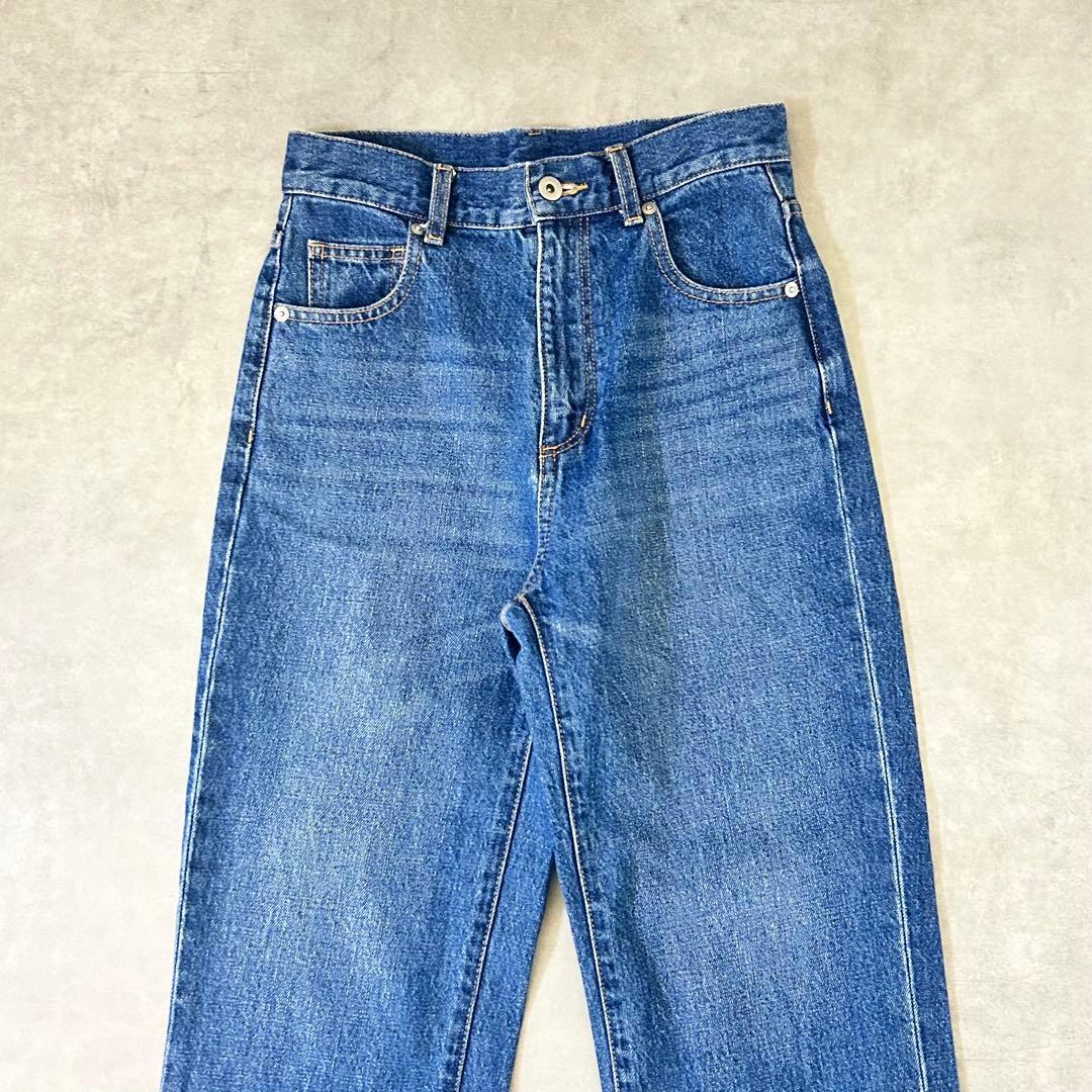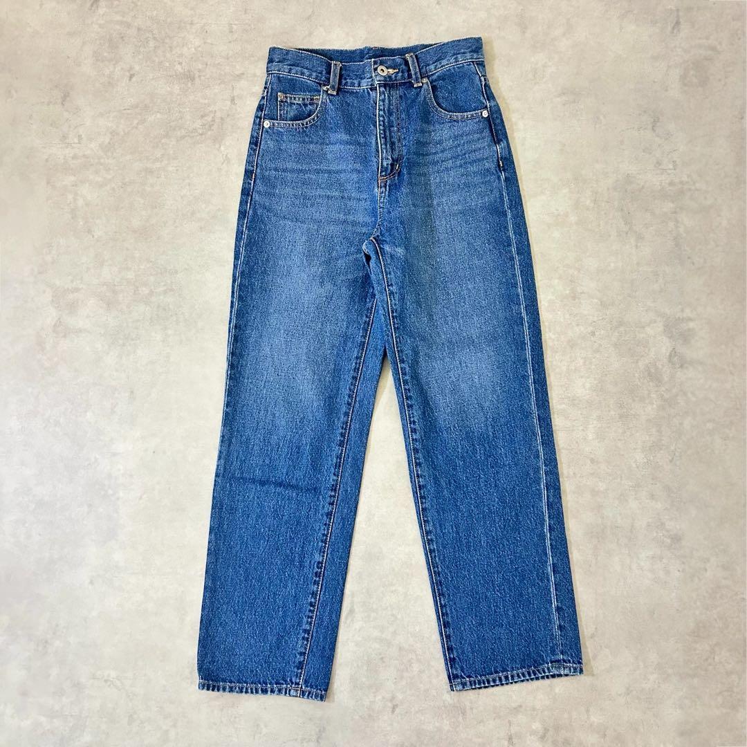 脚がすらっと長く見えるハイウエストストレートデニムです。