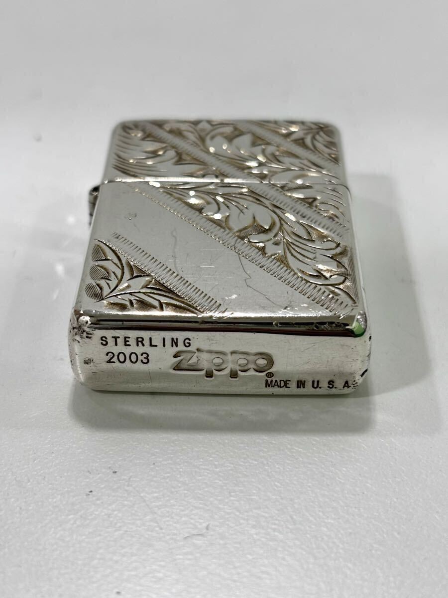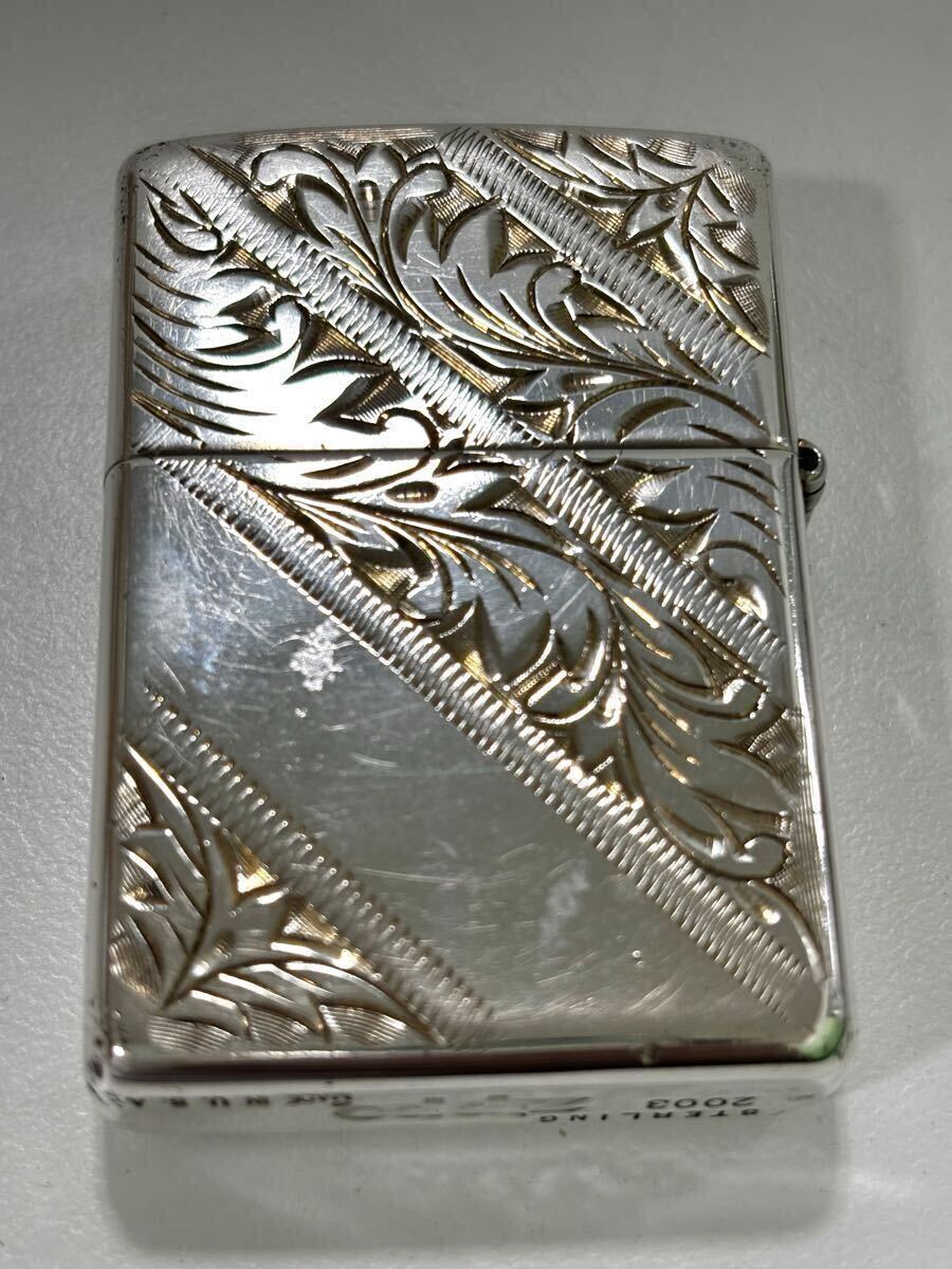 ZIPPO ジッポー STERLING スターリング シルバー 両面彫刻 唐草 2003年製 火花確認済み