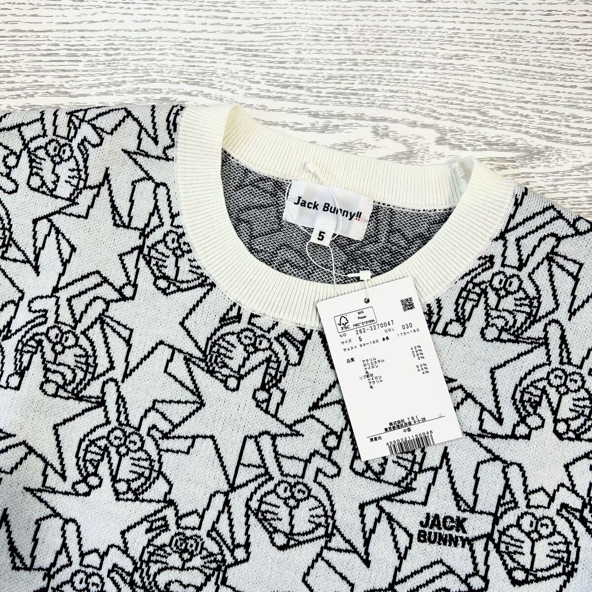 ☆新品☆Jack Bunny!! by PEARLY GATES ジャックバニー / ドラえもん総柄 クルーネックセーター / サイズ5