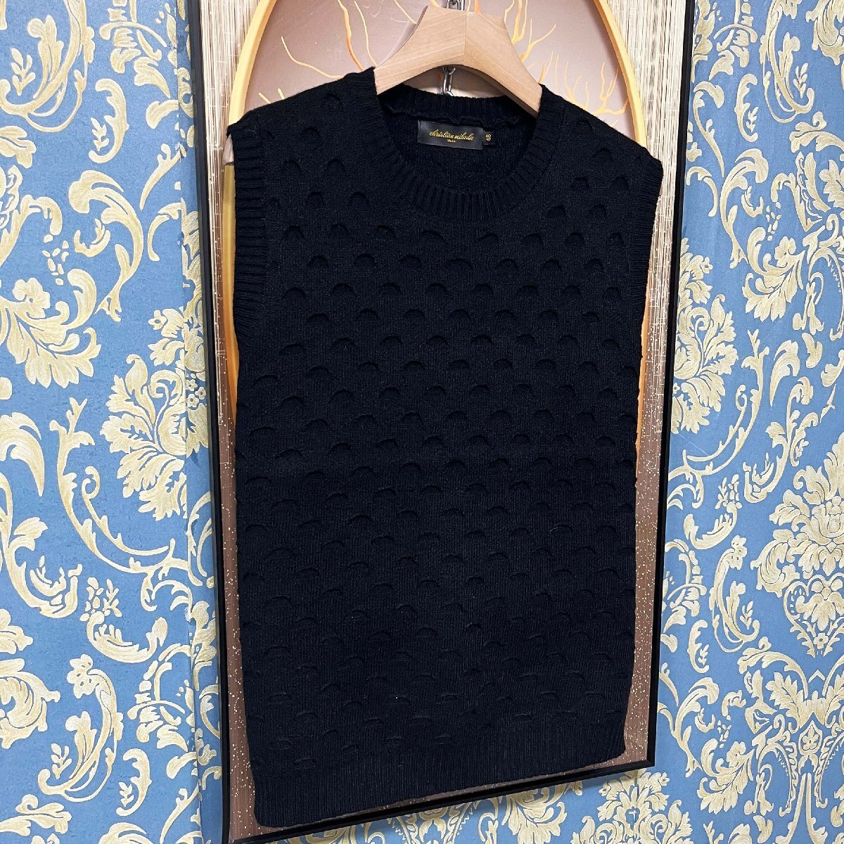定価3万★christian milada・ミラノ発・ニットベスト★ウール80% 人気 快適 ソフト 軽量 保温 無地 ニット トップス 袖なし 重ね着 M/46