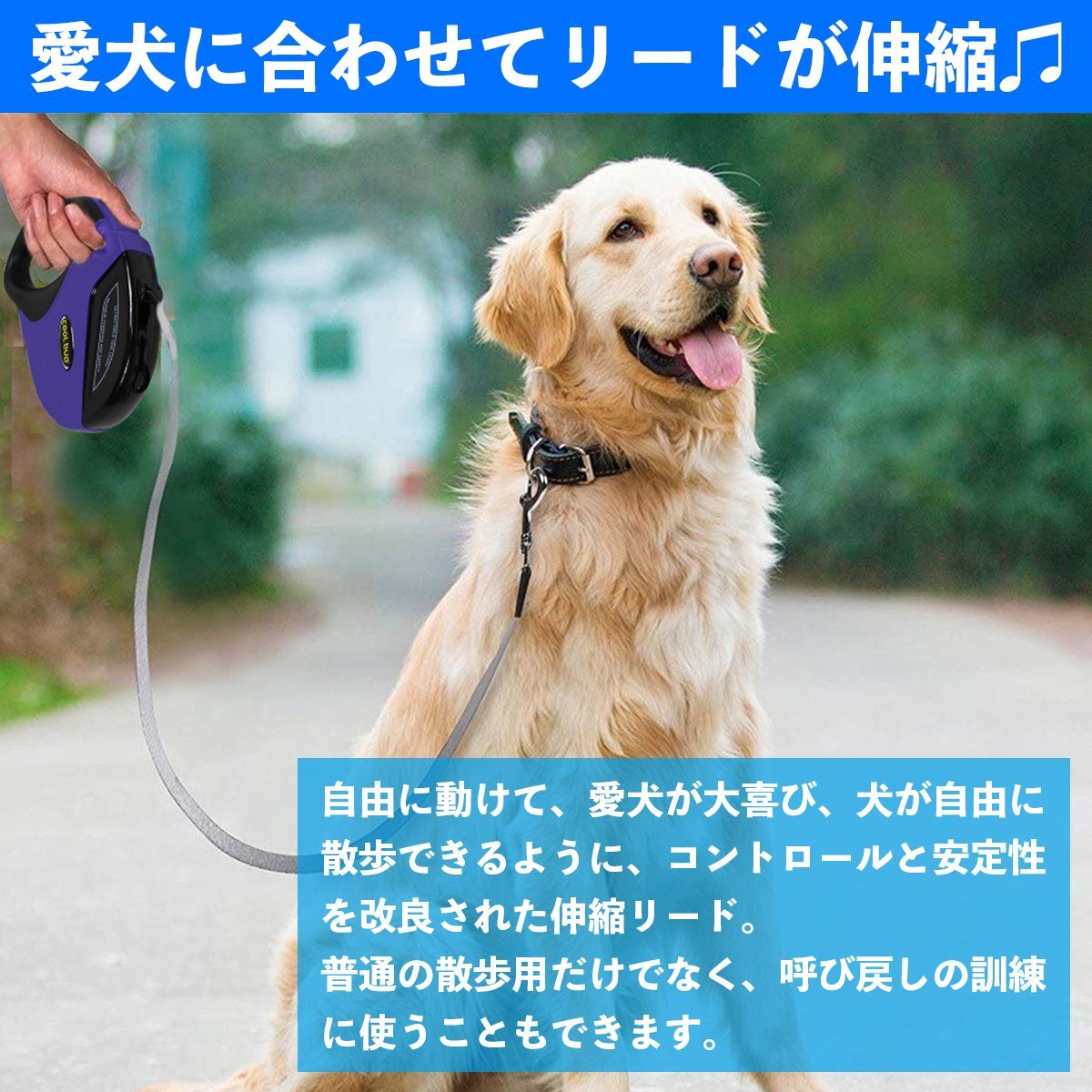 【送料無料】便利なロック機能付き!犬用 伸縮 リード 5m/5メートル 自動巻き取り パープル 紫 ペット 散歩 小型犬 中型犬 犬 ヒモ