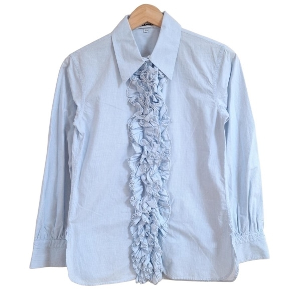 ジルサンダー JILSANDER 長袖シャツブラウス サイズ34 XS - ライトブルー×白 レディース ストライプ/フリル トップス