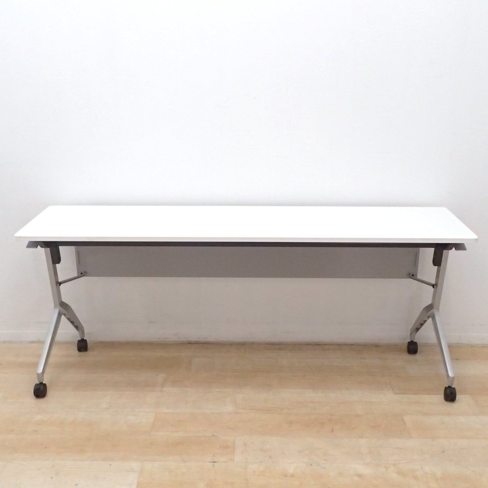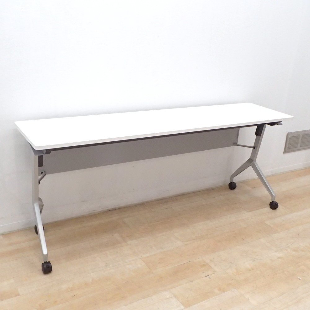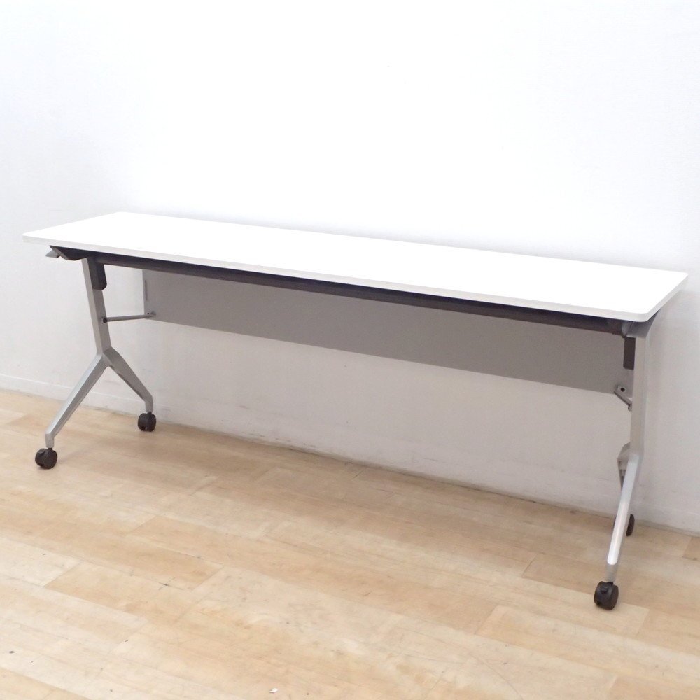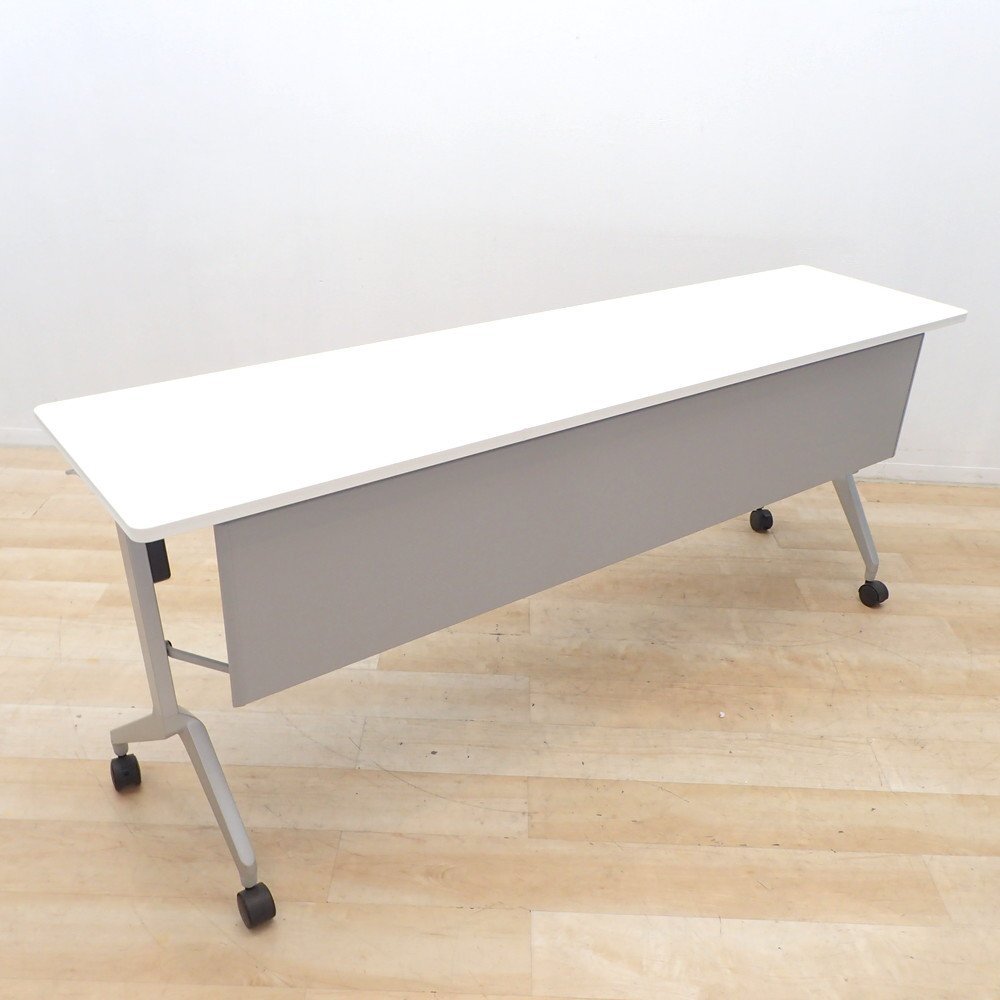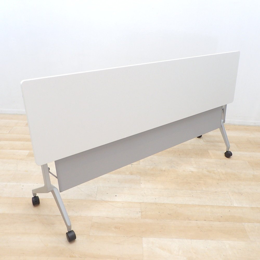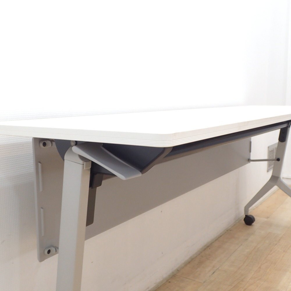 コクヨ リーフラインシリーズのスタックテーブル! グッドデザイン賞受賞のシンプルですっきりとしたフォルムです。 こちらはフラップ式テーブルの中で最もニュートラルな1800mm×450mm幅の作業スペース。 3人座っても間隔に余裕があり、長時間の着座になりがちな講演や学習塾などにおすすめです。 幕板付きで正面からの見た目もすっきり!荷物や足元が見えないので、催事などの受付でも安心してお使いいただけます。 移動や不使用時の保管もしやすい便利テーブルです。ぜひ、配置換えの多いフロアや会議室にどうぞ! |