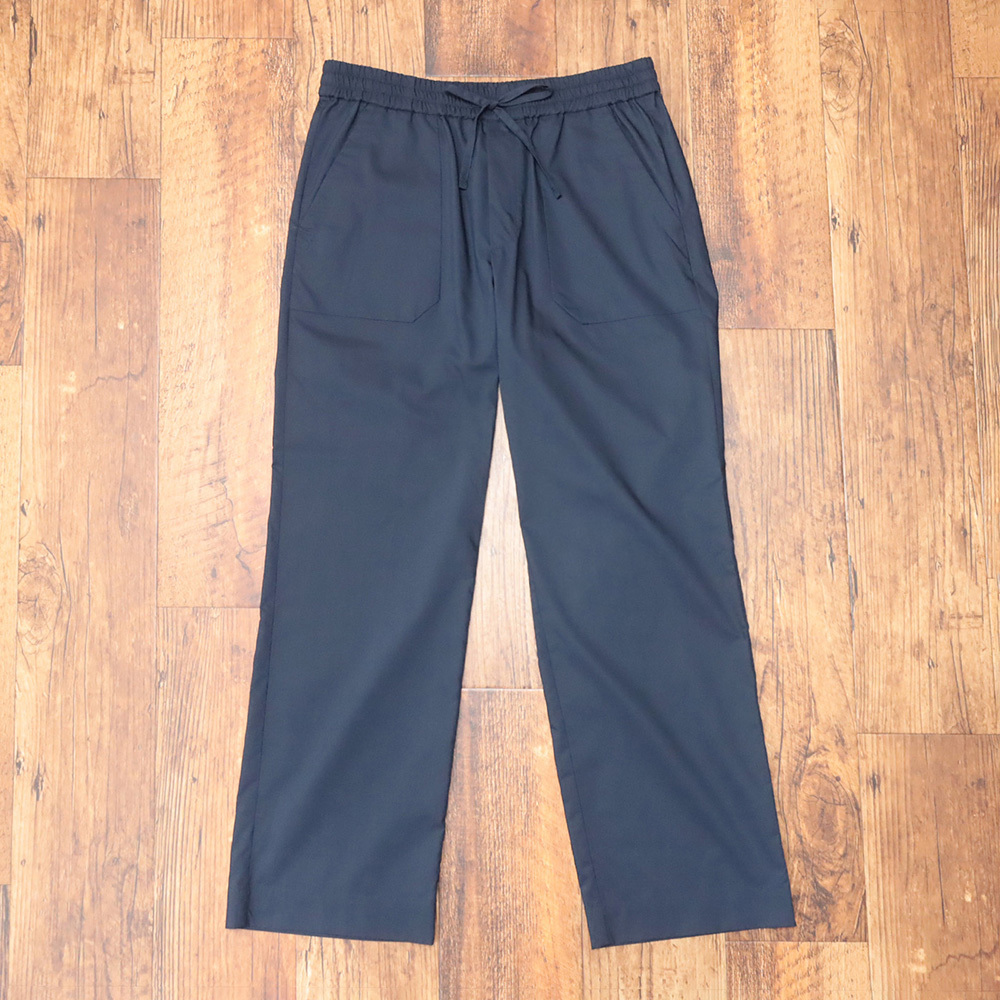 さらりとした肌触りで長いシーズン快適に着用できるイージーパンツ。コットンをベースにポリエステルをブレンドした生地は、薄手で軽く、しなやかなハリのある仕上がり。グレーは角度によって色味が変わる偏光カラー、ネイビーはベーシックな発色となっています。