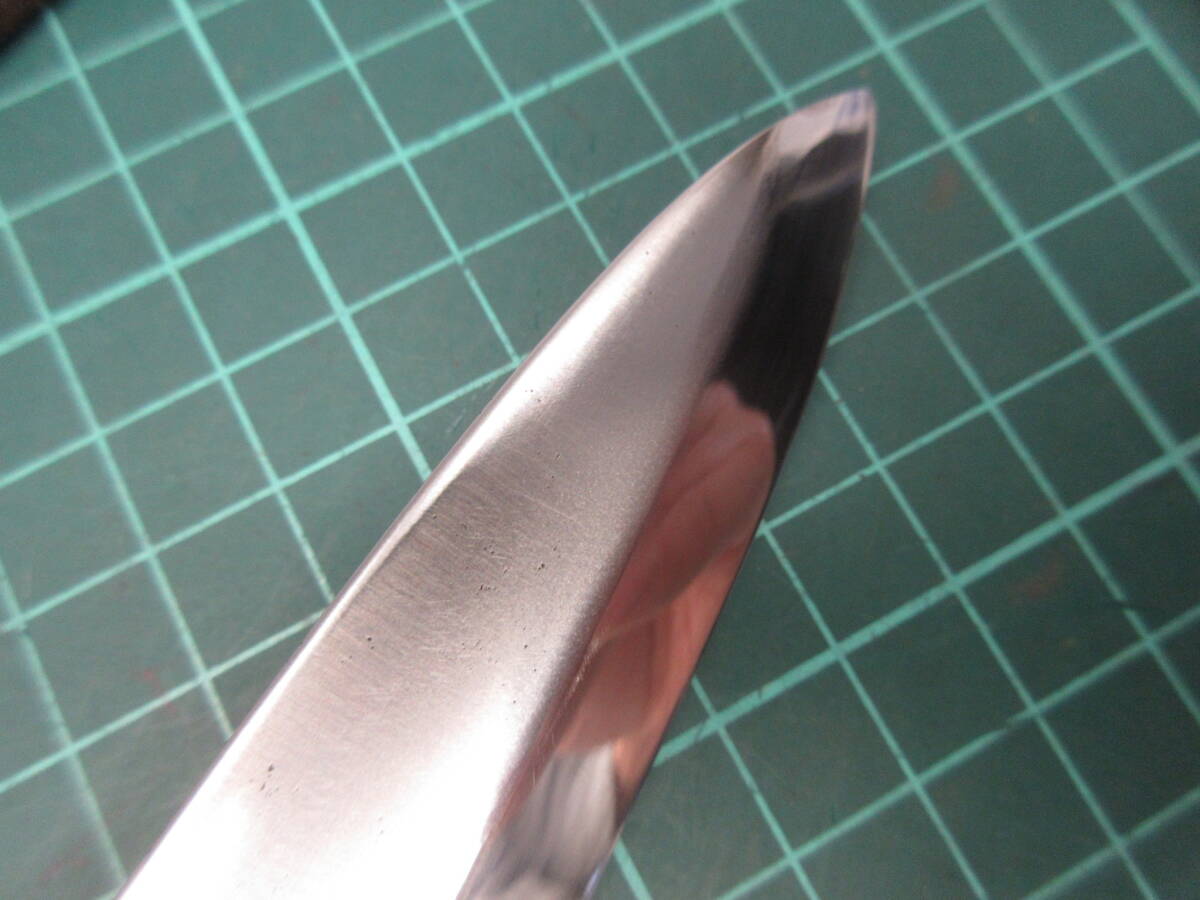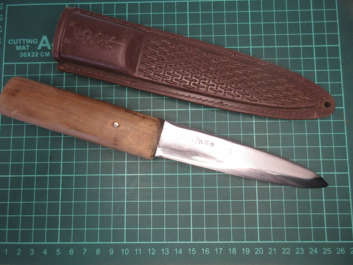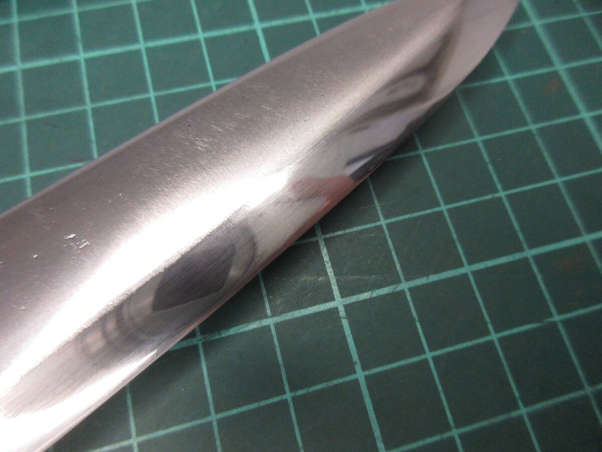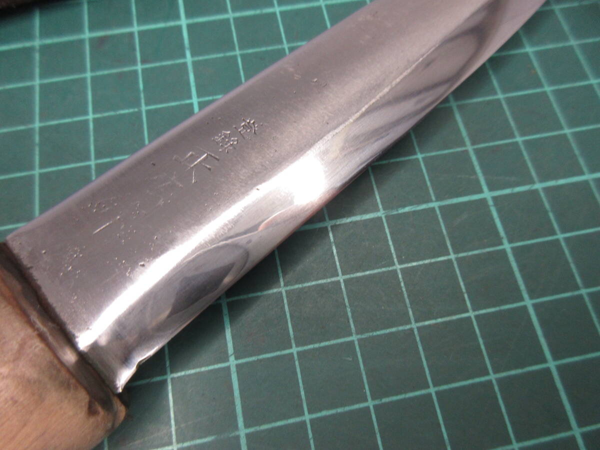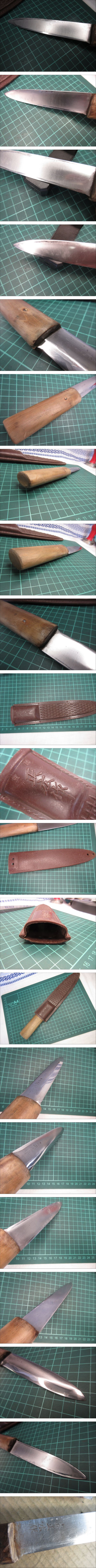 | 「受取連絡」が出来ない方の入札はお断りします。 こちらから評価を入れることはありません。 ■■■■■■■■■■■■■■■■■■■■■■■■■■■■■■■■■ マキリ13cm 全鋼で直ぐ錆びます。片刃、裏すきはあると思います。 プラ製の鞘が付属します。 最後の写真は磨き前です。 歪みや反り、落としきれない錆があります。全体的に使用感があります。 ■■■■■■■■■■■■■■■■■■■■■■■■■■■■■■■■■ 発送はレターパックです。(補償はありませんのでご注意ください。) 送料を抑えたい方はライト(430円)を選択してください。(ただし厚さ制限のため簡易包装です、新聞紙で包む程度ですので輸送時の衝撃で包丁の歪みや破損のリスクがありますのでご理解ください。) プラス(600円)は衝撃対策で厚めの梱包をします。(複数同梱の場合は包装が簡易になります。) 刃渡り21cmまではレターパックで発送できると思いますが長い刃は着払いゆうパックになります。 小振りな包丁なら3本くらいまでライトで同梱できます。プラスなら5本までは入ると思いますが21cm以上の包丁が絡むと本数が限られます。 以下は定型文です。 洋包丁は両刃、和包丁は片刃を前提に出品しています。 (タイトルと個別情報に刃付けの記載が無ければ上記のとおりです) 他の出品物と同梱できます。(システム上、着払いとのまとめ依頼ができません。落札後に同梱希望のメッセージを頂ければ対応します。) 送料と材質についての質問には返答しません。 包丁につきましては全てジャンクとし、ノークレームノーリターンでお願いします。 出品からお品物が届くまでに時間が掛かった場合、鋼などの材質ですと変色や錆などの変質がある場合がございますのでご了承ください。 錆の酷い包丁は再生研磨していますが、あくまで素人仕事です。電動工具を用いての仕上げです。 削る、磨くは出来ますが歪みの修正は出来ません。中古品ですので歪みがある前提で入札してください。 磨きにより錆に強くなるメリットがありますが切った食材が張り付くデメリットがあります。 切れ味が悪いや、思ったより汚いなどのクレームはご遠慮ください。 触れば怪我をするほどの最低限の刃付けはしてあります、開封時にご注意ください。 肉眼での検品ですので微細な傷や欠けを見落としている可能性もありますので写真を参照してください。 現状維持のために防錆目的で椿油を塗布していることがありますので写真に不自然な艶が写っている時があります、ご了承ください。 (鋼の洋包丁の場合は中子にも塗布するために柄にも油が散布しています。ご使用前に洗浄してください。) 中子やリベットの錆を落とす為に柄ごと研磨する場合がありますので、柄に研磨痕が残っている時があります。 柄の仕上げに軽く蝋引きしています。 片刃の場合、研ぎですが砥石傷が付くのを嫌ってベタ研ぎはせず、峰をわずかに浮かして仕上げています。(綺麗な裏押しの和包丁はベタ研ぎです) 10対0ではなく9対1位の感覚です、完璧な片刃をお求めの方は入札をご遠慮ください。 (和包丁は片刃前提です、洋包丁が片刃の場合にはタイトルと個別情報に片刃と記載してあります) 有効利用、再生利用できる方の入札をおまちしています。 写真で判断いただき、商品説明を理解出来る方のみ入札をお願いします。 クリーニングなどはせず、写真のままお送りします。 専門知識が乏しい為、質問に答えられない時があります。 ブランド品の真偽については不明とさせて頂きます。 素人による中古出品です、すり替え防止の為にもノークレームノーリターンでお願いします。 入金を確認しました時点でお取り置き終了と判断し発送準備にはいります。 同梱発送、お取り置きを希望の方は入金前に連絡頂くと助かります。 落札後、48時間以内の初回連絡、五日以内の入金が確認出来ません場合は落札者様都合のキャンセルとさせて頂きます。 その場合落札者様に非常に悪い評価とブラックリストへの登録を同時に行いますのでご了承ください。 (以後こちらのオークションに入札が出来なくなります) #お取引に不安を感じる評価の方は削除させて頂く事があります。 #総合評価が高くても直近に悪い評価がある方も削除致します。 #いたずら入札を防ぐ為、1万円以上の入札額時の場合は新規の方の入札をお断りします。 #(どうしても入札したい時は質問欄より入札意思をお伝えください。) *評価を入れて頂くと反射的にお返しする形を取っています、不要の方は評価を入れないで下さい。 *こちらから評価をお付けすることはありません、不要の方は「受取連絡」で終了して下さい。 自己紹介欄もあわせてお読みください。 | ||