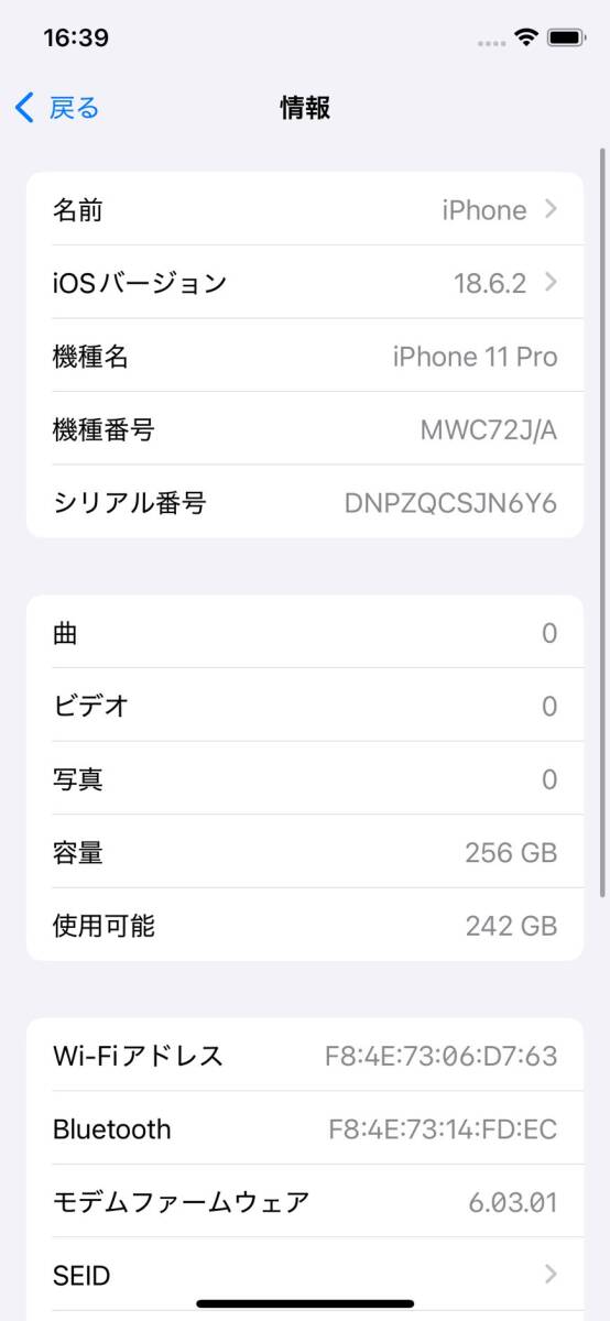 【1円スタート!動作確認済み!送料無料!】 Apple アップル iPhone11 Pro MWC72J/A 256GB SIMロックなし / 法ER257845578-ネコポス