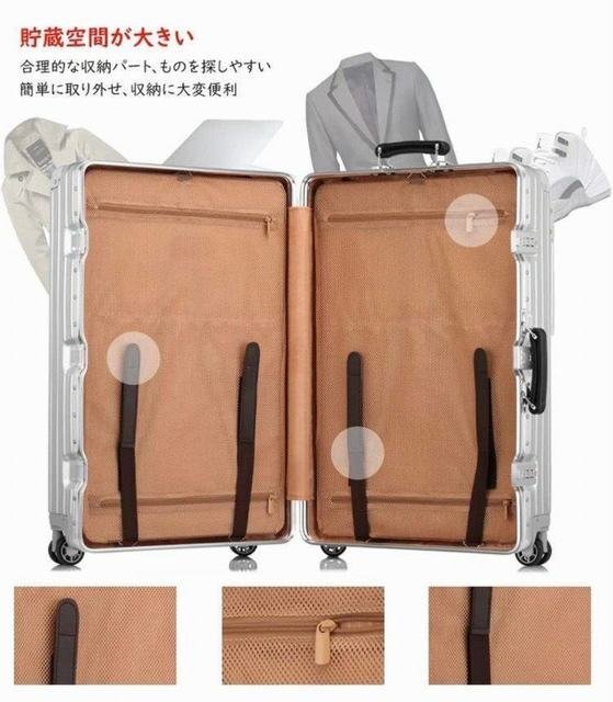 【内部】 トランクケースの内装はポリエステル素材を採用して、初心者の方から旅慣れた方まで幅広くご利用頂けるスーツケースです、耐久性には優れて丈夫です、長持ちできます。仕切り板も荷物のこぼれる事故を防ぎます。大容量の同時にキャリー安いです。