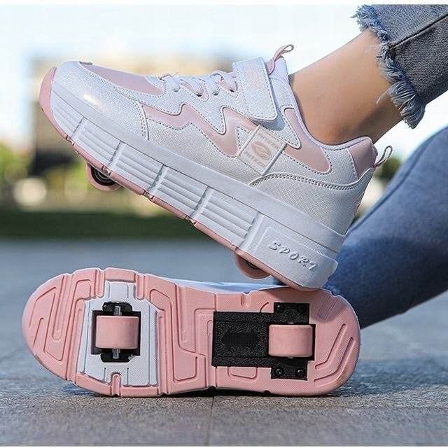 インラインスケート子供用ローラースケート子供普通の子供用運動靴として履けるキッズスニーカーベルクロ&シューレースローラースケート靴 【アッパー】:合成繊維 【インナー素材】:メッシュ 【ソール】:ゴム 【クローズ】:ベルクロ/レース 【ホイールタイプ】: 2輪 【ヒールの高さ】:2 cm 【デザイン】: アウトソールの隠し格納式ホイール。アウトソールは高品質のゴムでできており、耐久性があり、滑りません。ボタンを押すと、ホイールがポップアップします。ボタンを押し続けると、ホイールが押し戻されてロックされます。 かかとのボタンからローラーをポップアップして非表示にすることができます。ローラースケートと通常のスポーツシューズの両方を使用できます。これらのスケートはまた非常に快適でスタイリッシュです。