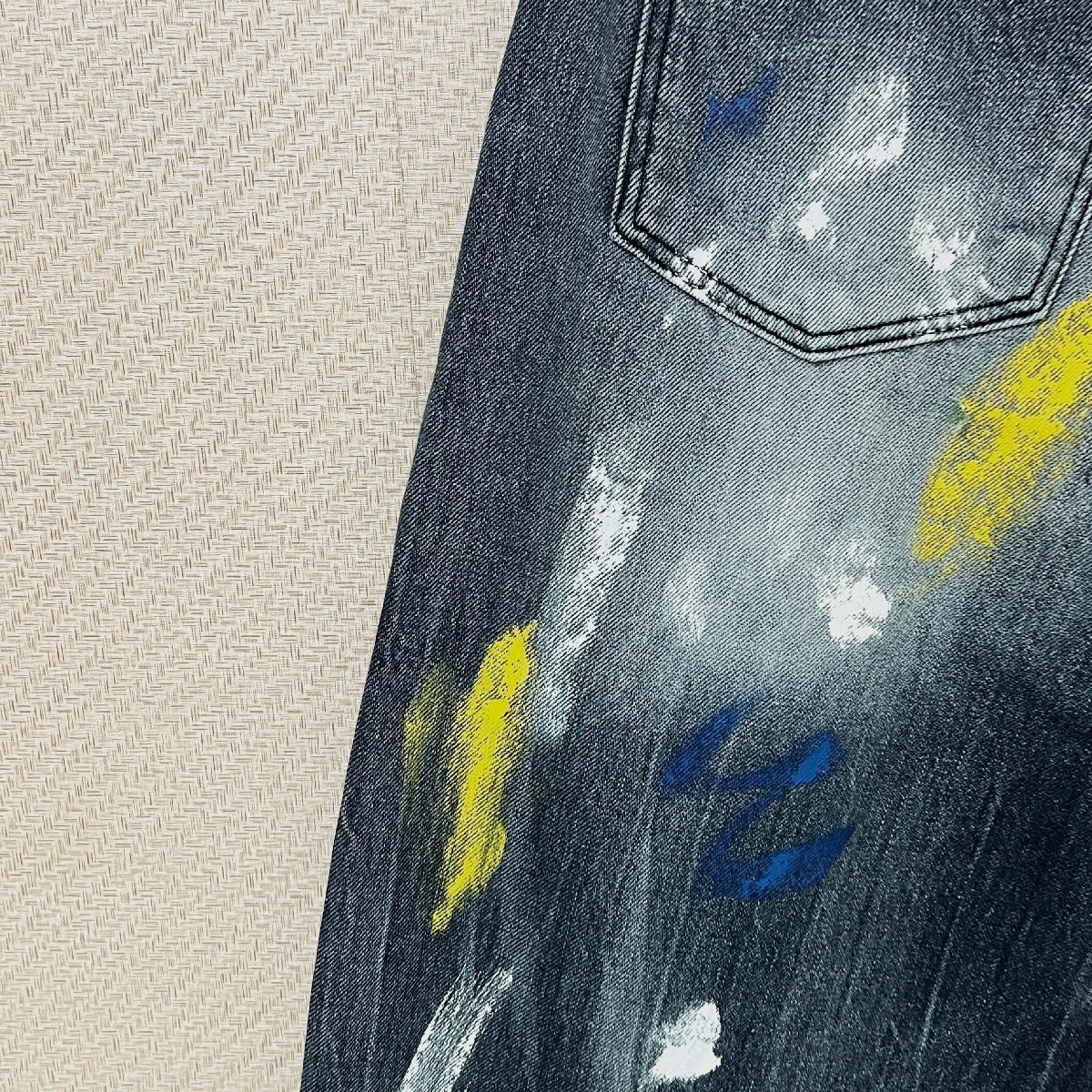 絶妙な色落ちに加え、立体感のあるヒゲ加工を施すことで、ヴィンテージ感あふれる雰囲気を演出。さらに、ペンキ加工がアーティスティックな風合いをアクセントに。前後に合わせて四つのポケットがあり、十分な収納スペースを提供します。