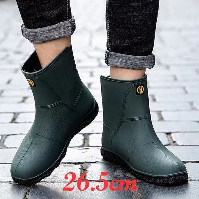 レインブーツ メンズ レインシューズ ショート ミドル丈 防水 雨 長靴 軽量 スニーカー風 グリーン 26.5cm