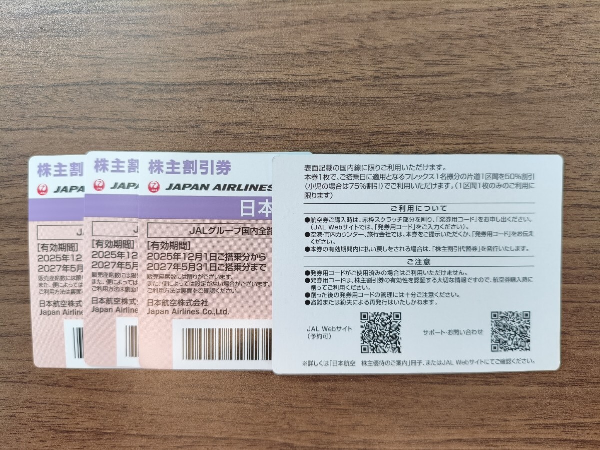 JAL 株主優待券 4枚 番号通知方式