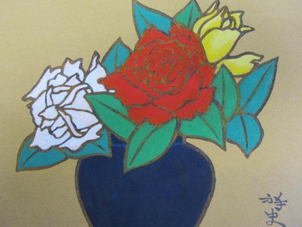 絵画 日本画 佐久間祥史 薔薇 ◆真筆◆ 絵のみ(額なし)