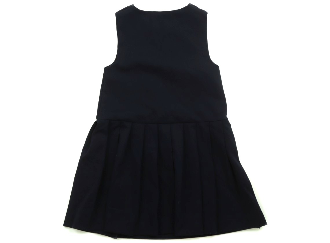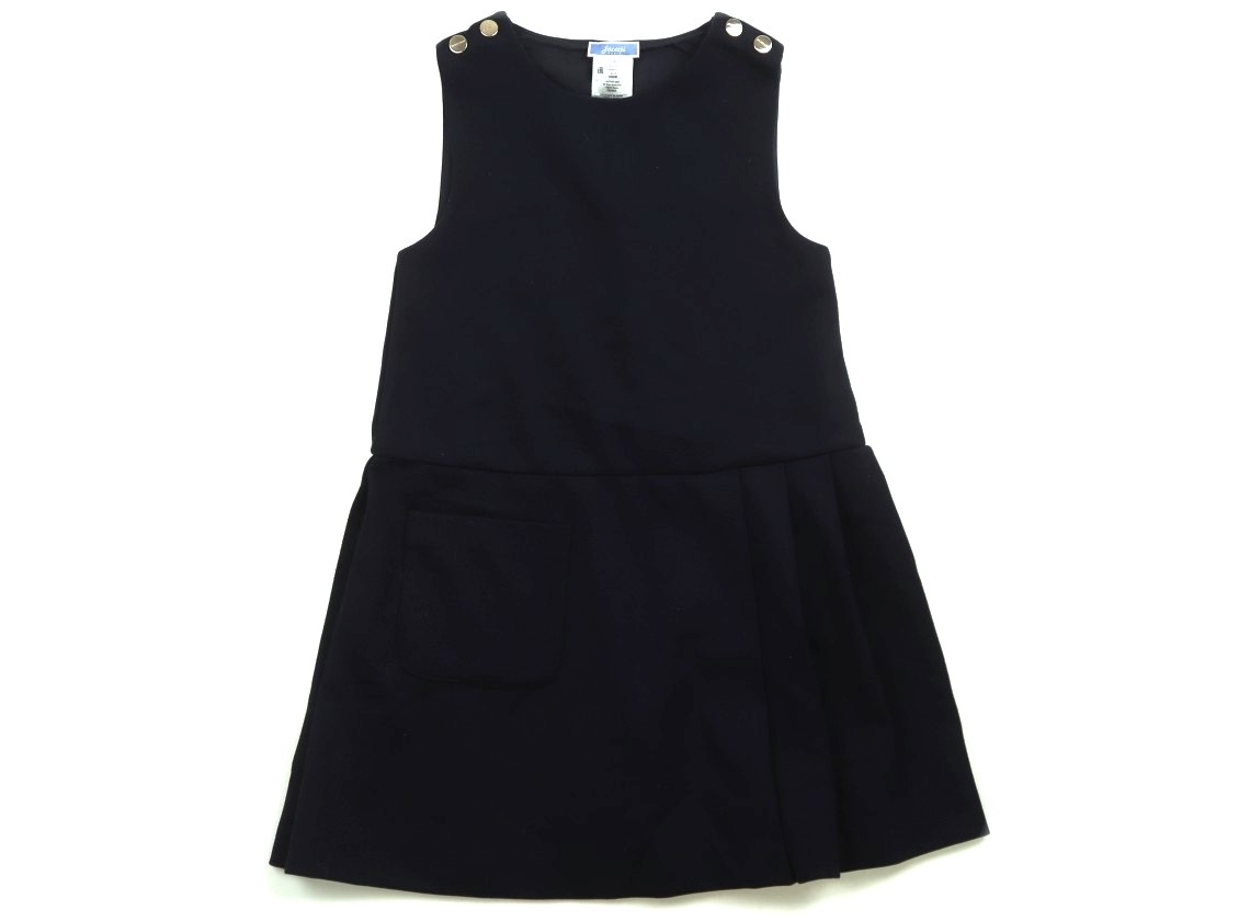 実際のサイズ表記は128cmです。ポンチカットソー生地で上見頃に裏地付き。裏生地にシワがあります。肩ドットボタンあき。左前脇と後ろはプリーツデザイン。一部に若干毛玉がありますが、まだお使いいただけます。