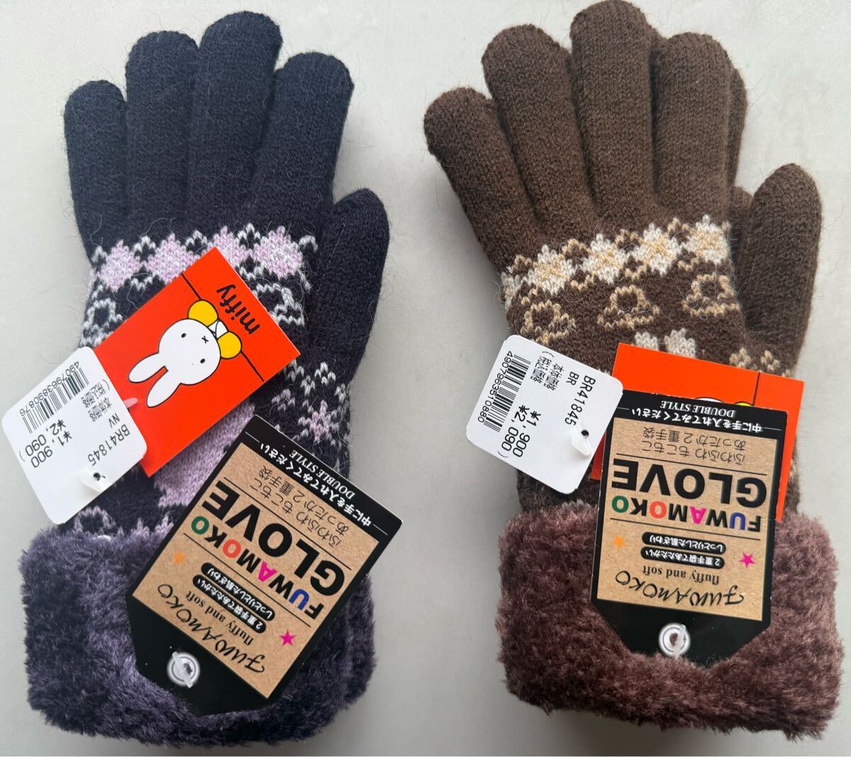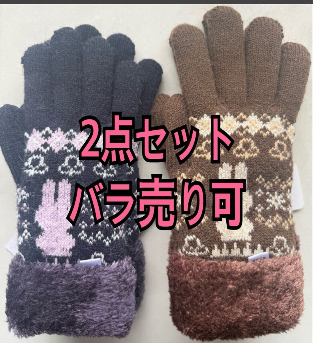 ミッフィー茶色 紺色 手袋2種セットになります。