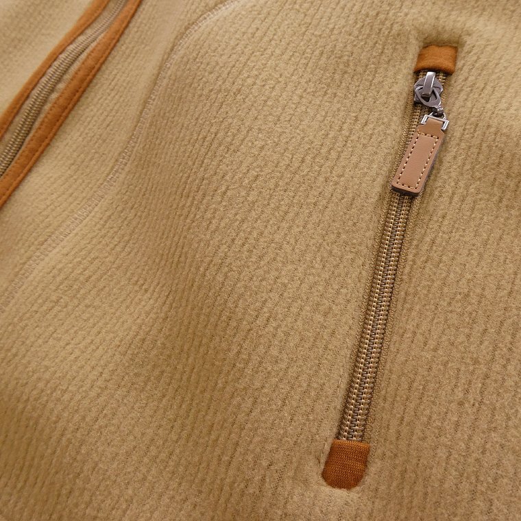 表側はスッキリとした縦畝のフリース素材に、裏側もソフトなマイクロフリースを使用。 非常に暖かく防寒性があり、本体もソフトで軽いので快適な着心地で秋冬に重宝するアイテムです。 生地はボンディング加工になっているので、厚みがありながらも軽く、防風性にも長けています。 秋からのアウターとして、真冬の重アウターのインナーとして活躍します。 カジュアルシーン・アウトドア・スポーツなど、シーンを選ばず着用できるのも嬉しいポイントです。 【デザイン】 ・フロントはシングルジップ ・両サイドジップポケットあり ・裾内側にドロストコード付き |