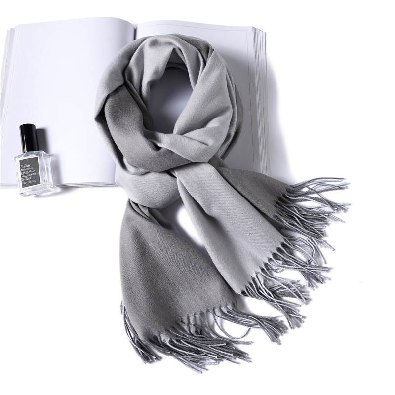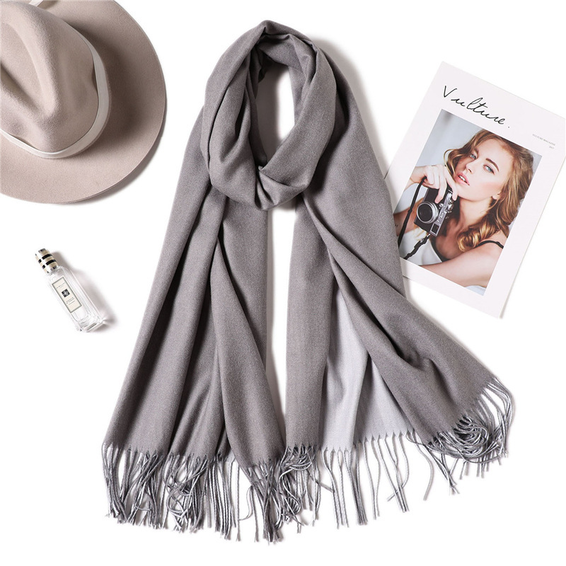 新入荷☆新品定番 上質大判 カシミヤ100% マフラー ストール 最高の肌ざわり リバーシブル グレー×ライトグレー