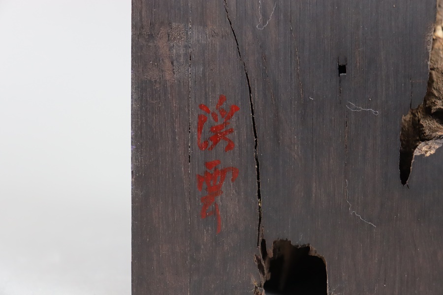 渓雲 造 天然木 黒柿 香筒 高36,6cm 茶道具 煎茶飾 時代物 細密細工 古美術品[d1299]