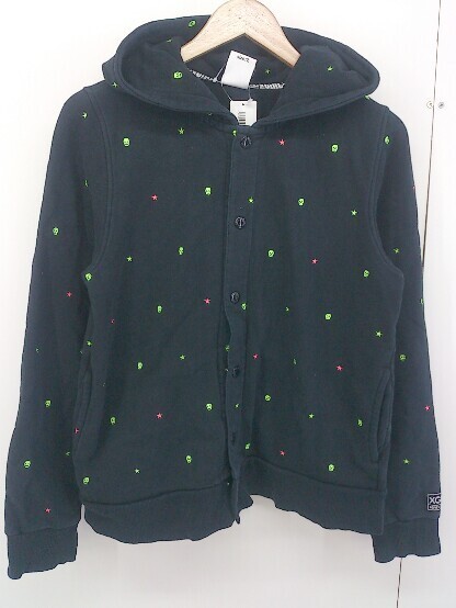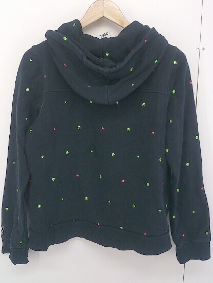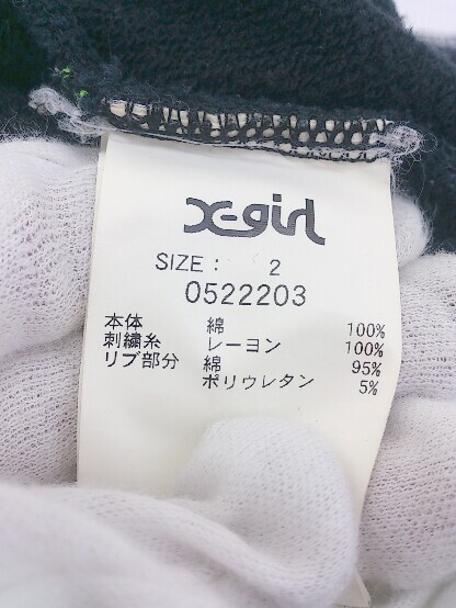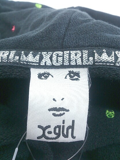 ◇ X-girl エックスガール 刺繍 長袖 パーカー サイズ2 ブラック マルチ レディース