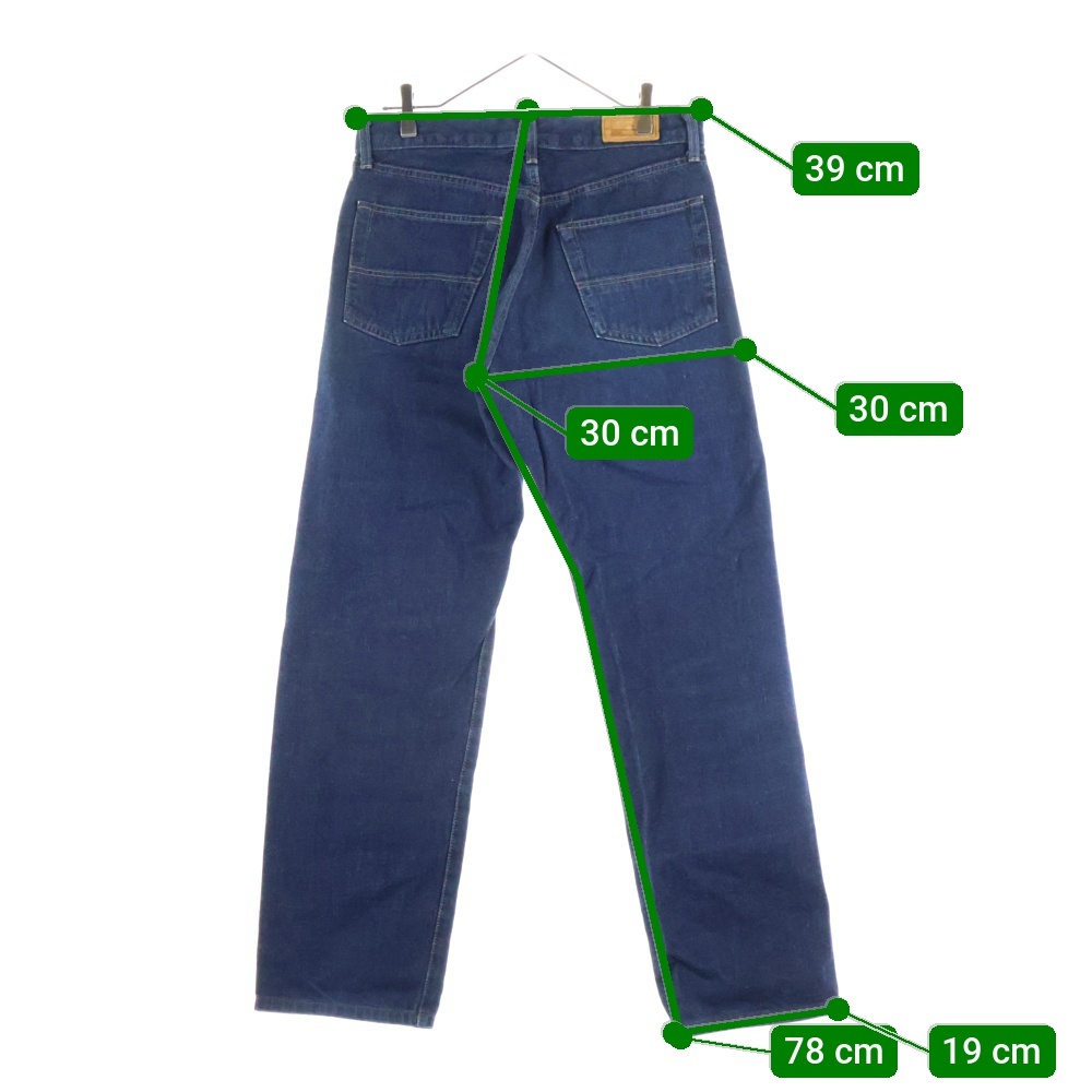 実寸 ウエスト:39センチ ワタリ:30センチ 股上:30センチ 股下:78センチ 裾幅:19センチ